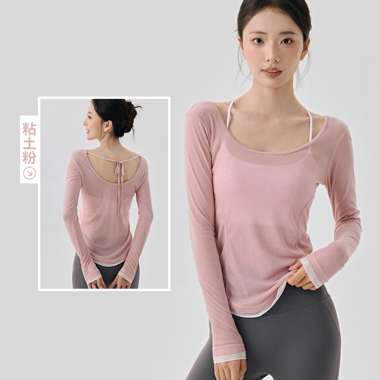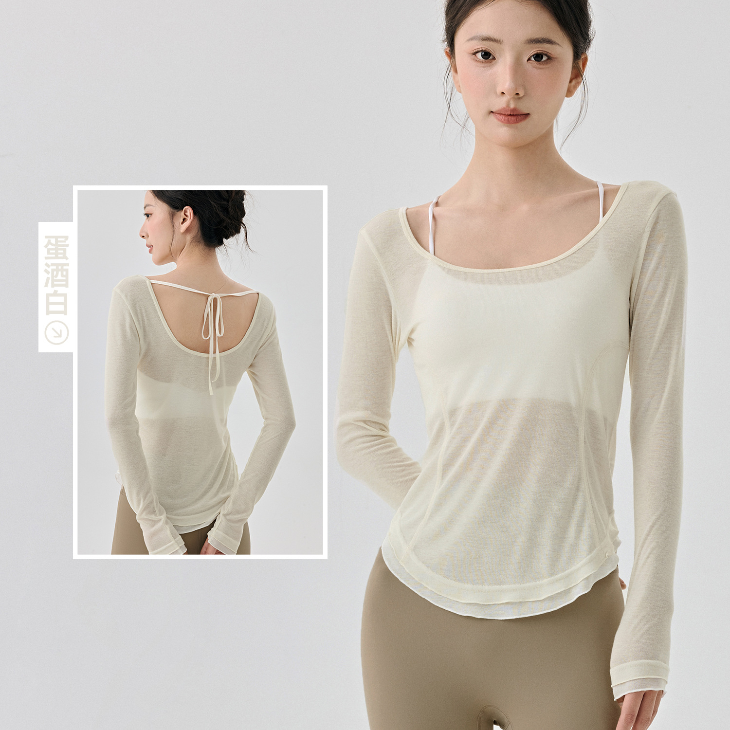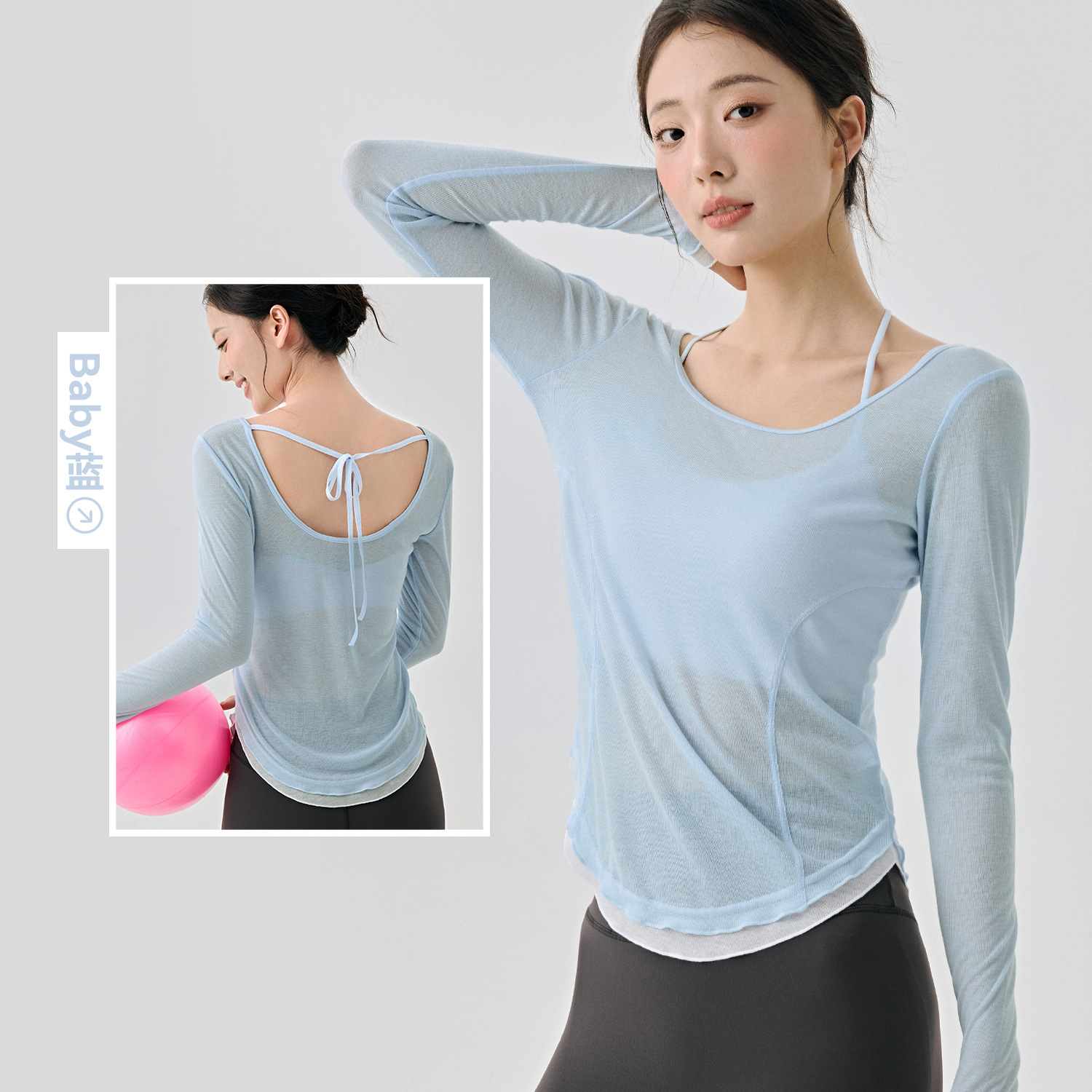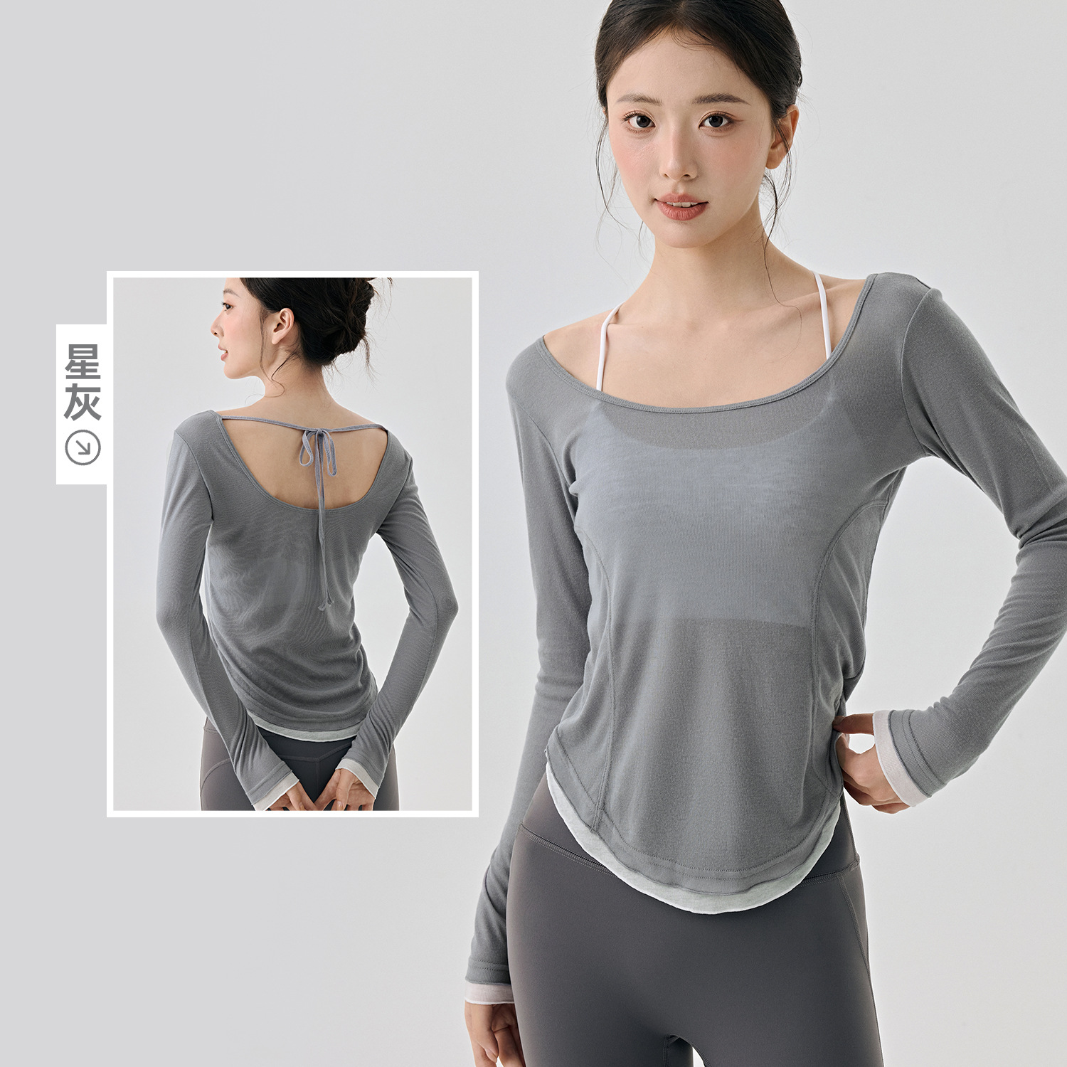 레이스 업 아름다운 등 요가 커버 업 긴팔 여성 슬림 피트 얇은 통기성 대비 색상 하이 엔드 요가 의류 커버 업