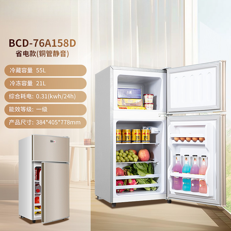 2인용 1급 에너지 효율 소형 냉장고, 가정용 소형 임대실 기숙사용 미니 양문형 냉장고
