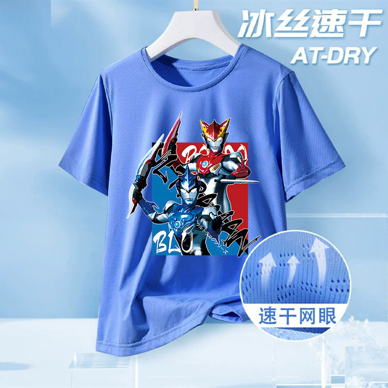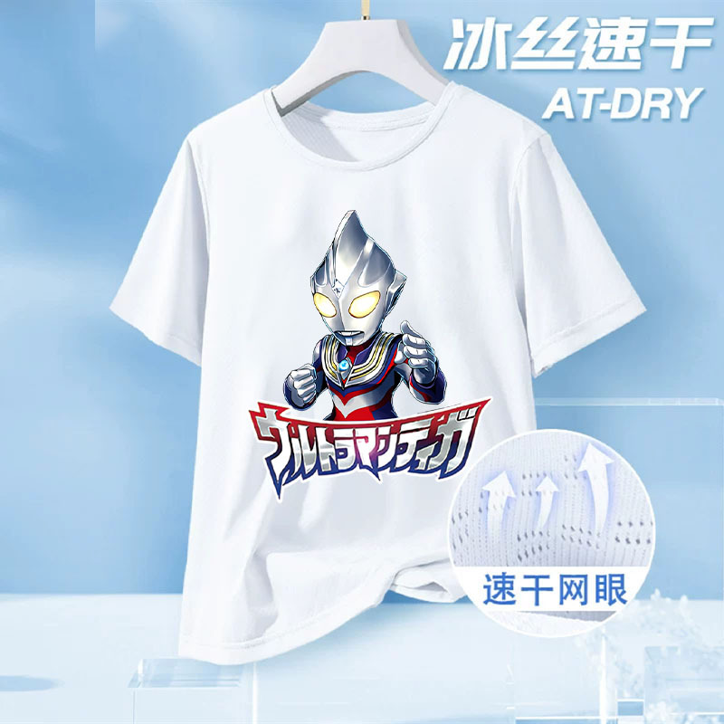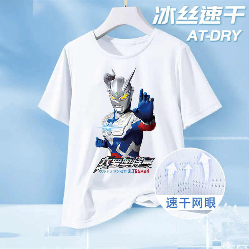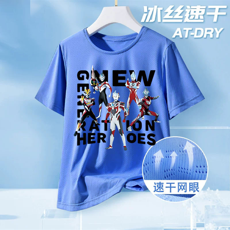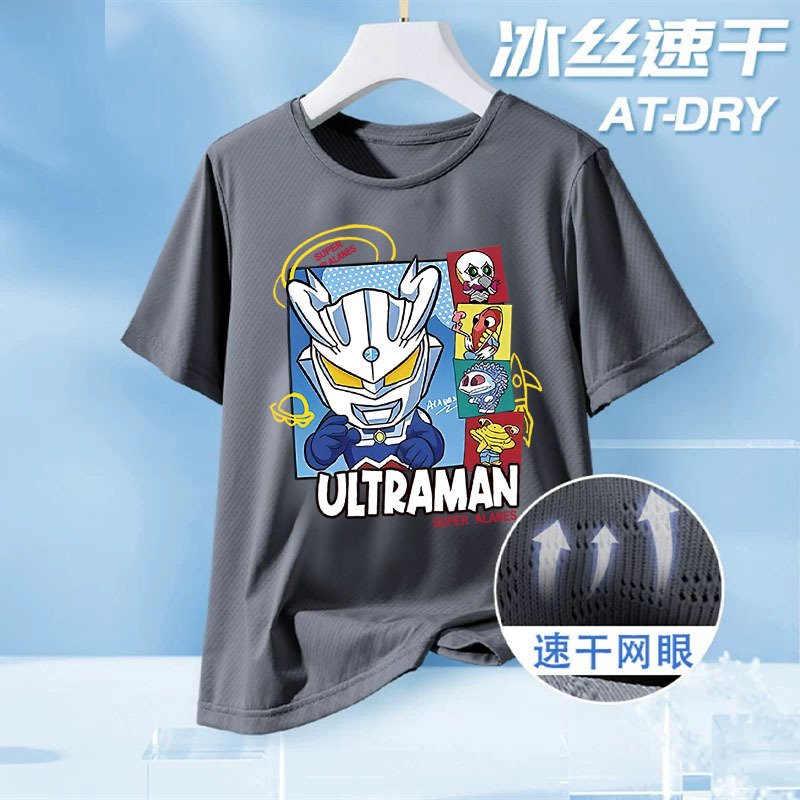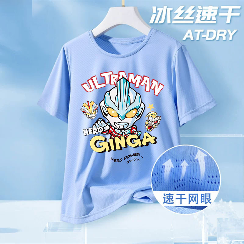 울트라맨 아동복 큰 어린이 여름 메쉬 반팔 탑 2025 새로운 소년 얼음 실크 속건 반팔 티셔츠스토어 가기