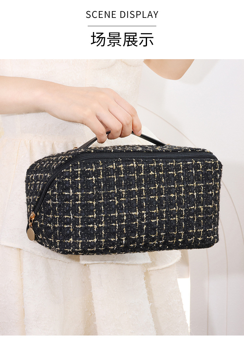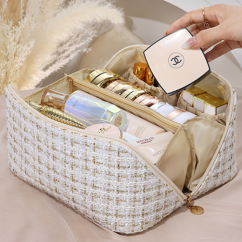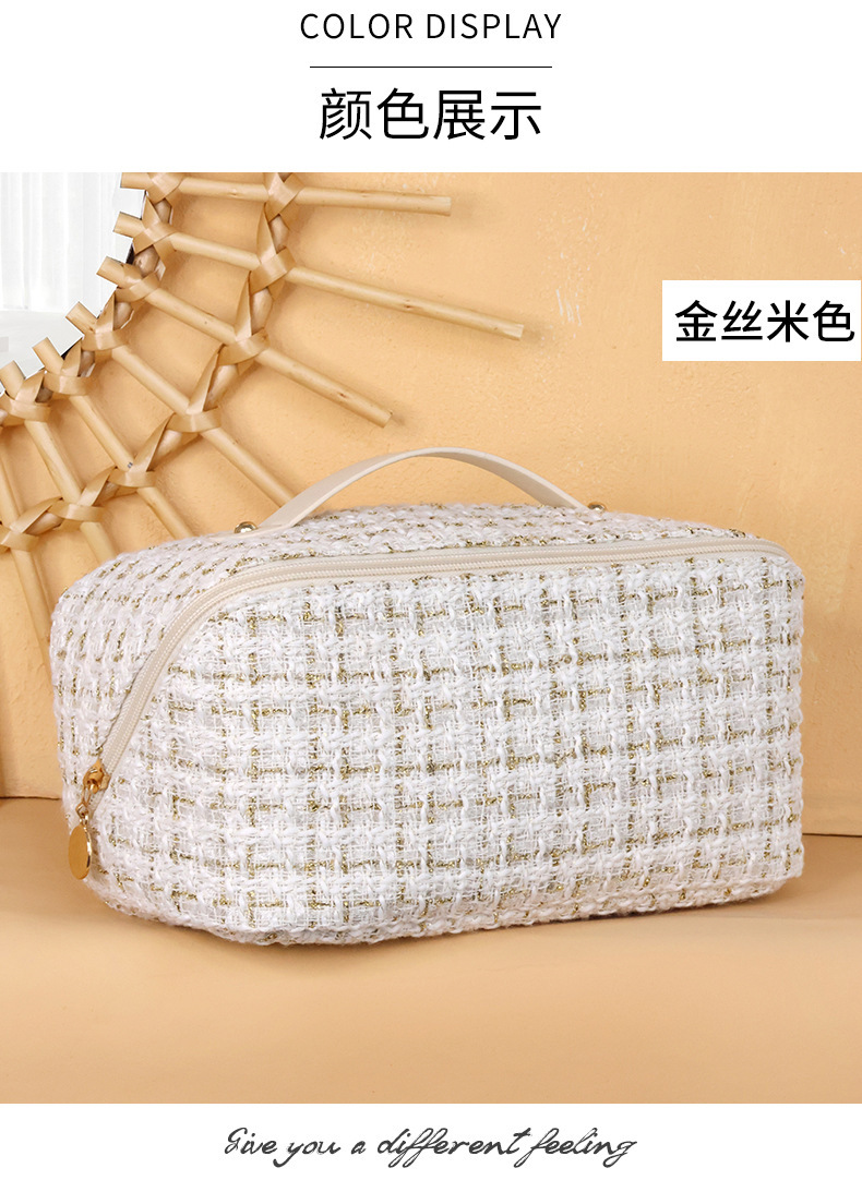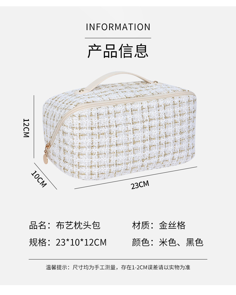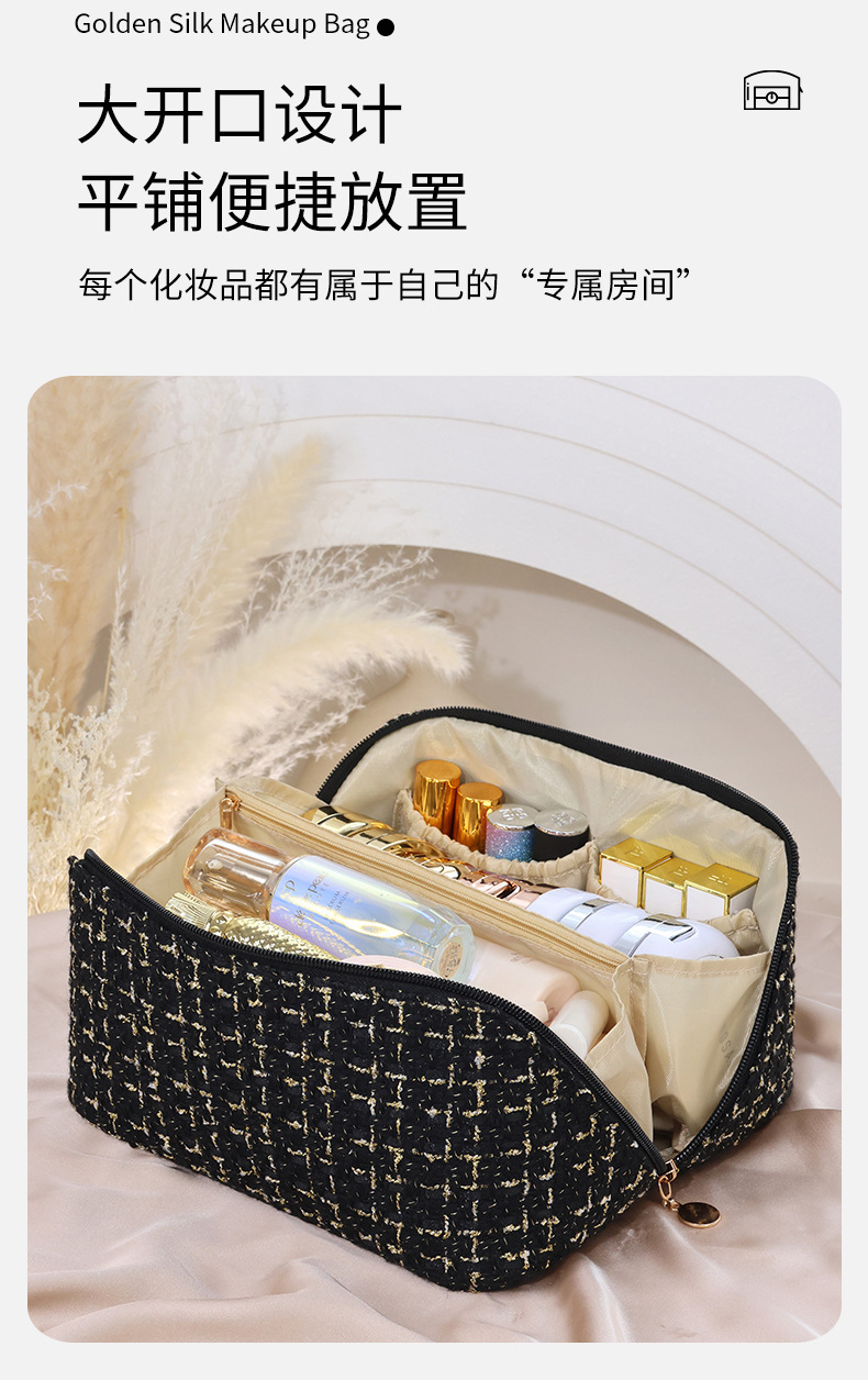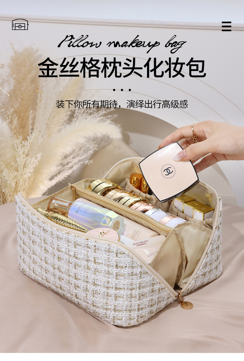 휴대용 베개 화장품 가방 새로운 하이 엔드 라이트 럭셔리 골드 실크 격자 여성 대용량 휴대용 소형 향수 화장품 가방스토어 가기