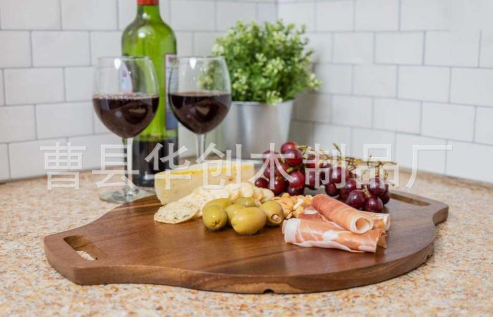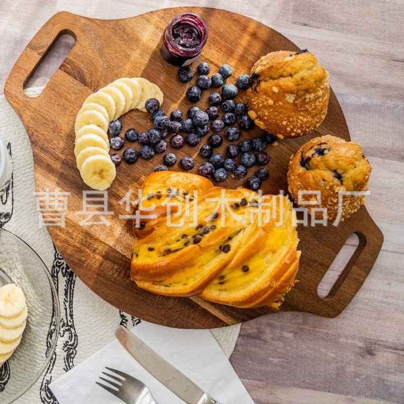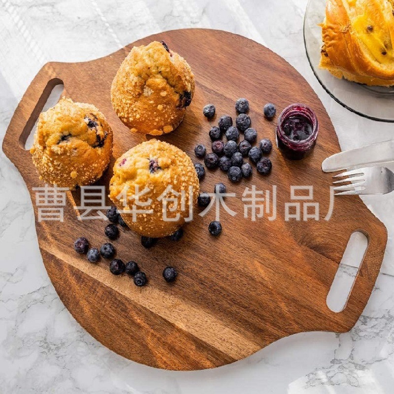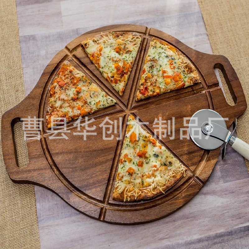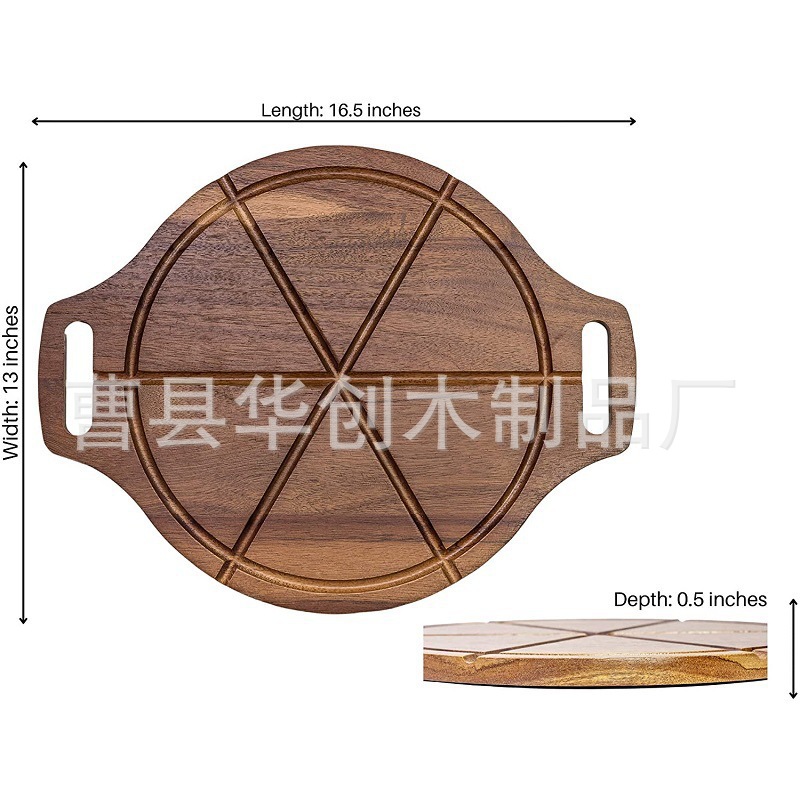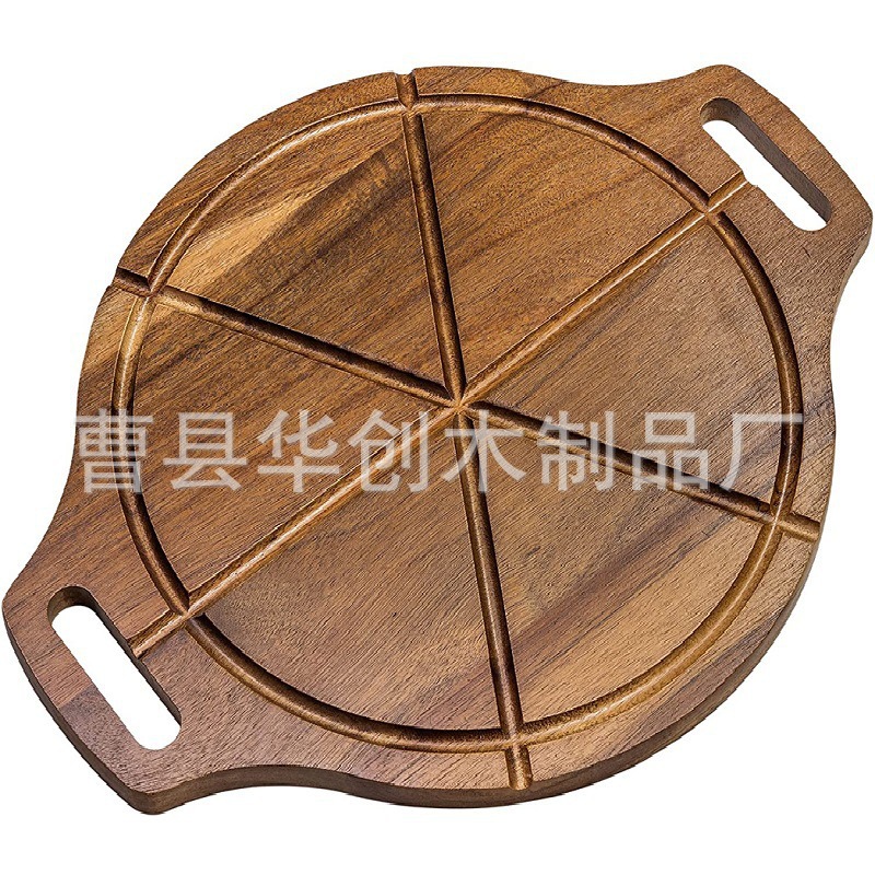 나무 홈이 있는 피자판 아카시아 나무 양면 사용 가능 트레이 손잡이 포함 서양식 스테이크 단단한 나무 트레이스토어 가기