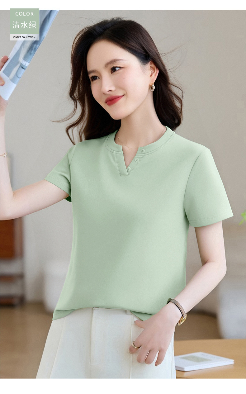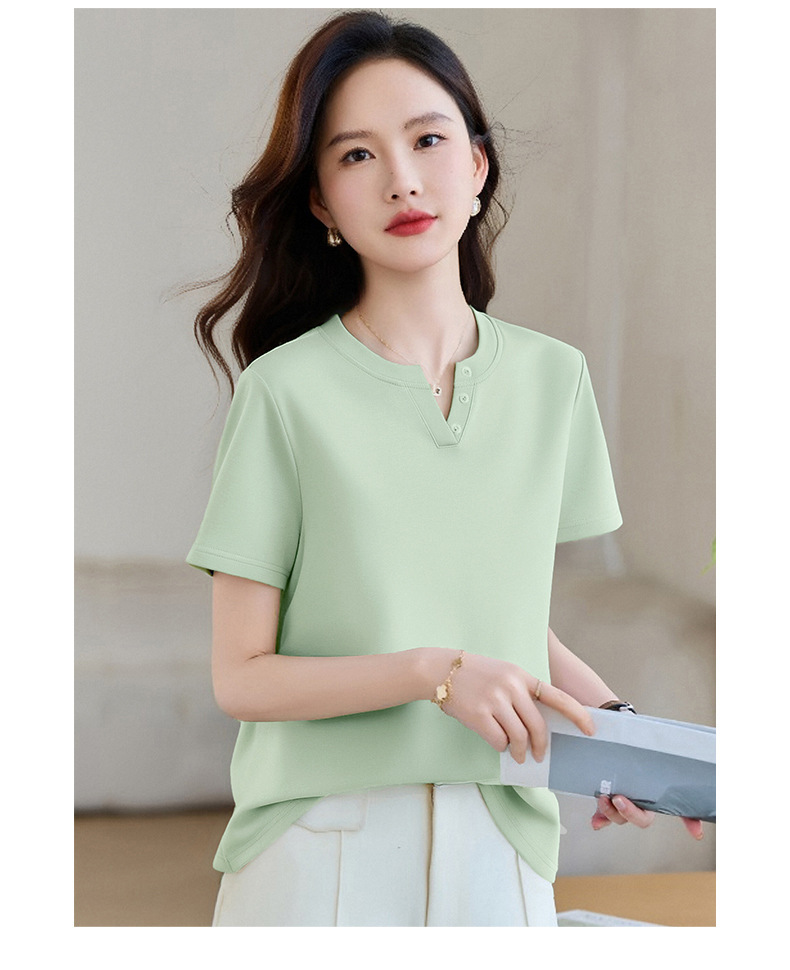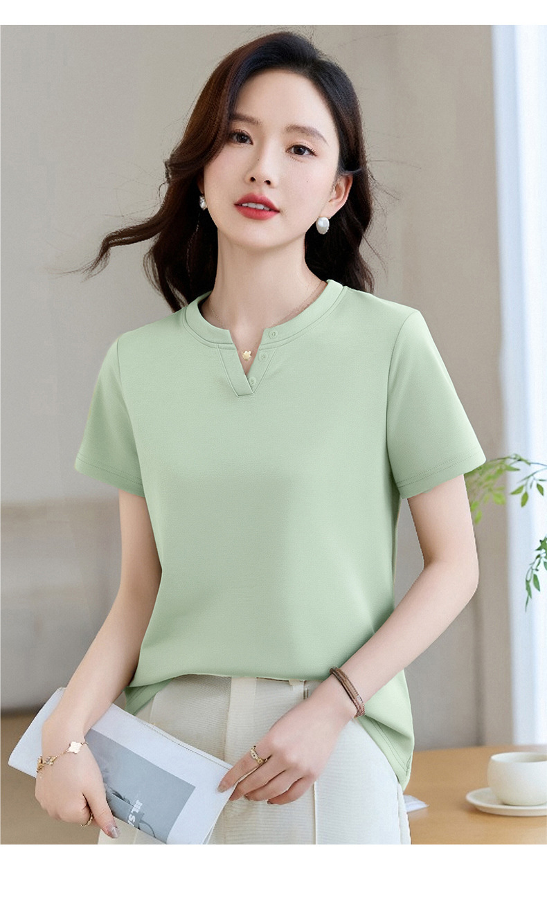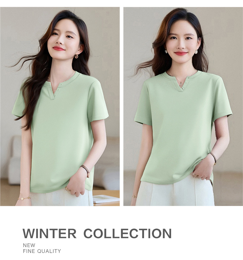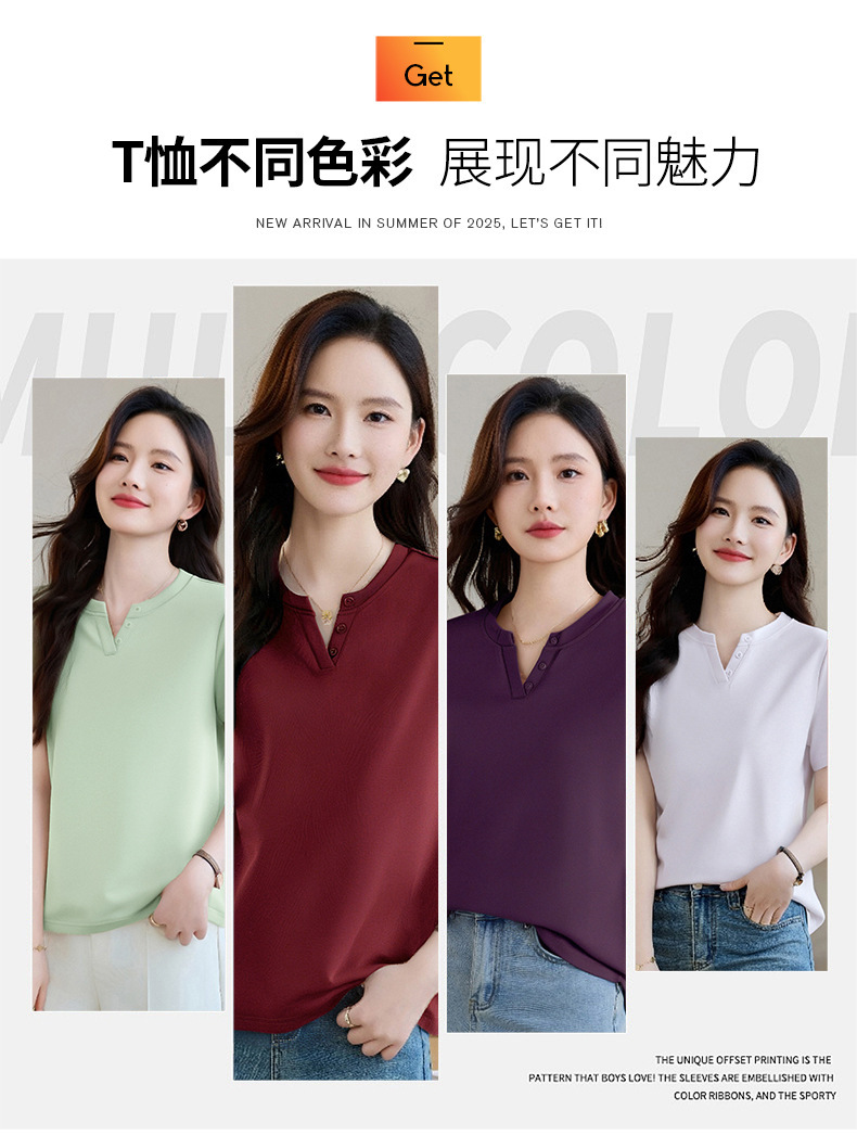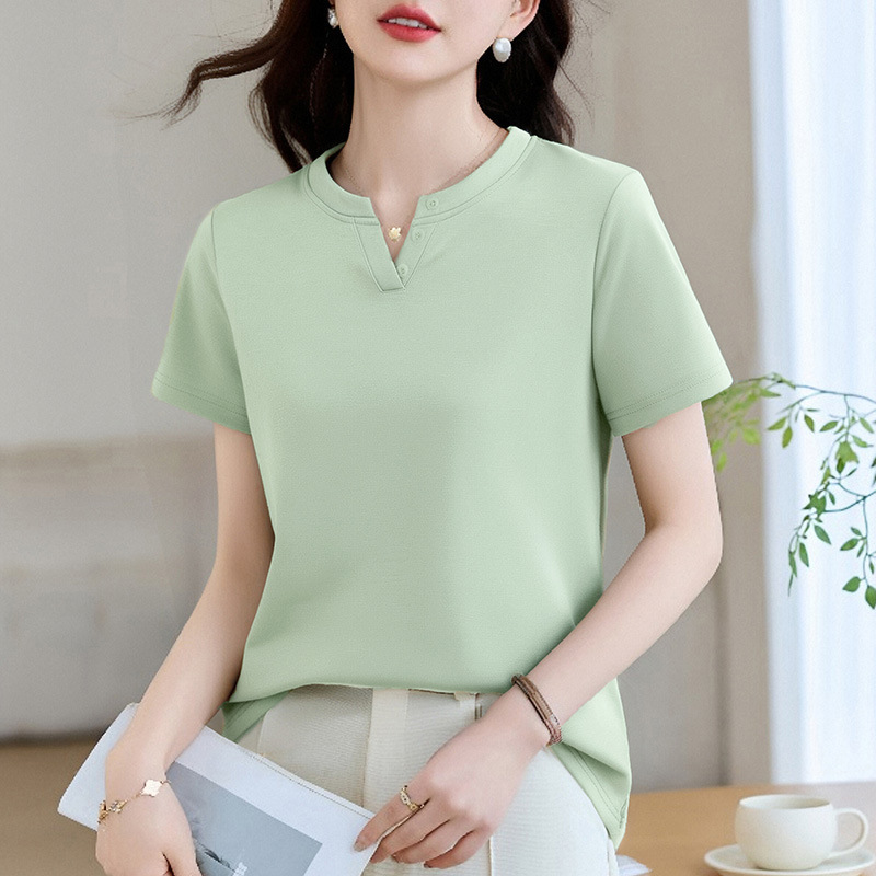 여성을위한 독특한 슬림 반팔 티셔츠 2025 여름 신작 그린 오른쪽 어깨 v 넥 반팔 세련되고 시크한 연령 감소 탑스토어 가기