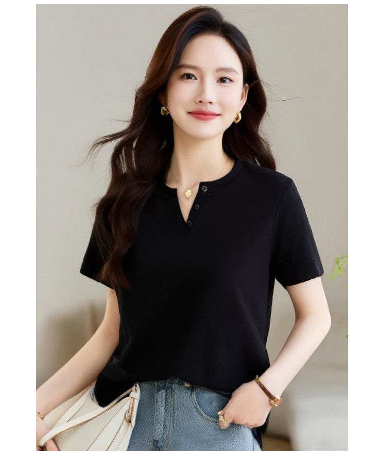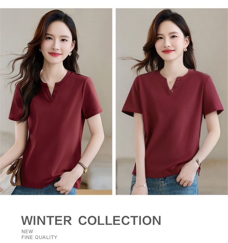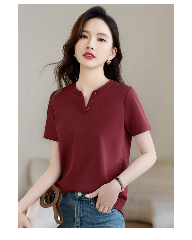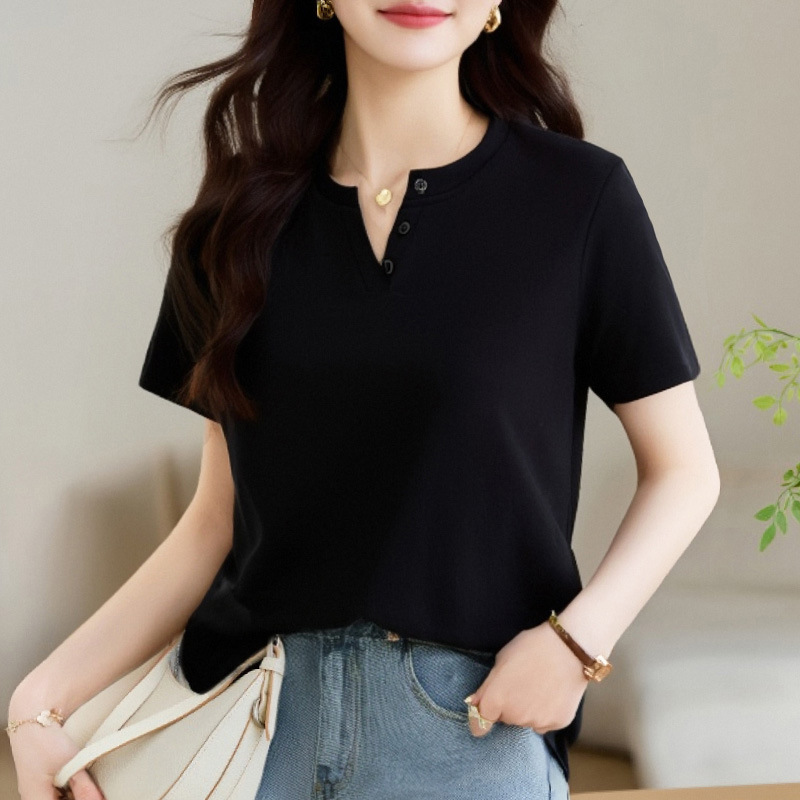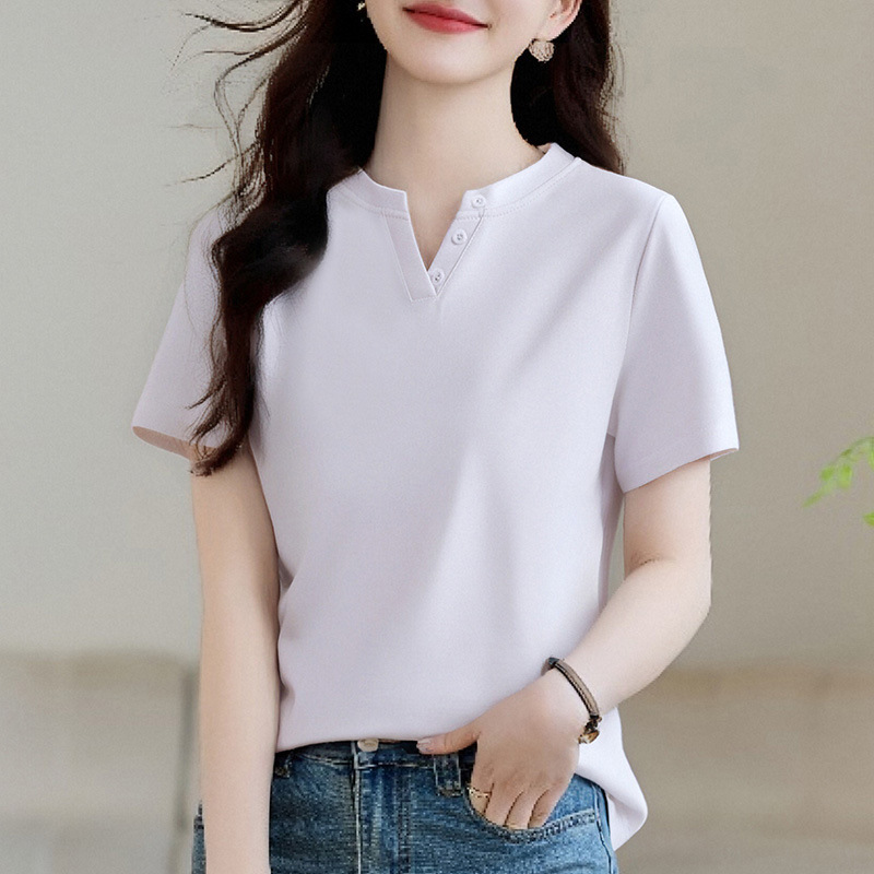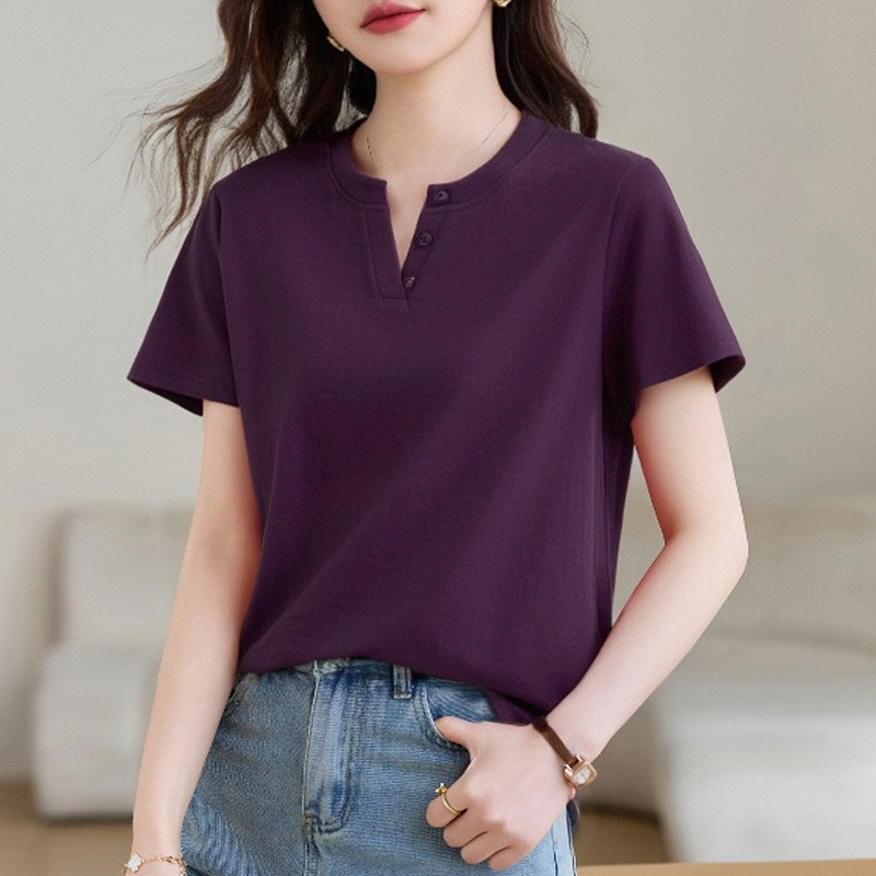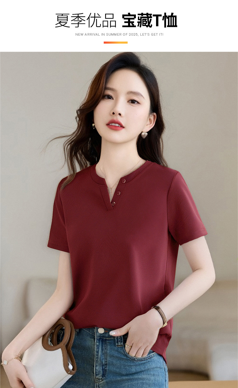 여성을위한 독특한 슬림 반팔 티셔츠 2025 여름 신작 그린 오른쪽 어깨 v 넥 반팔 세련되고 시크한 연령 감소 탑스토어 가기