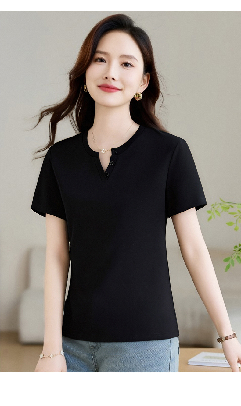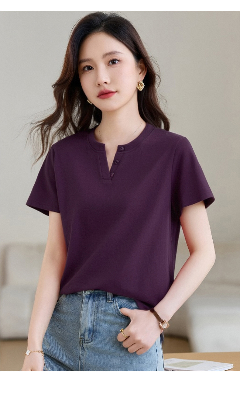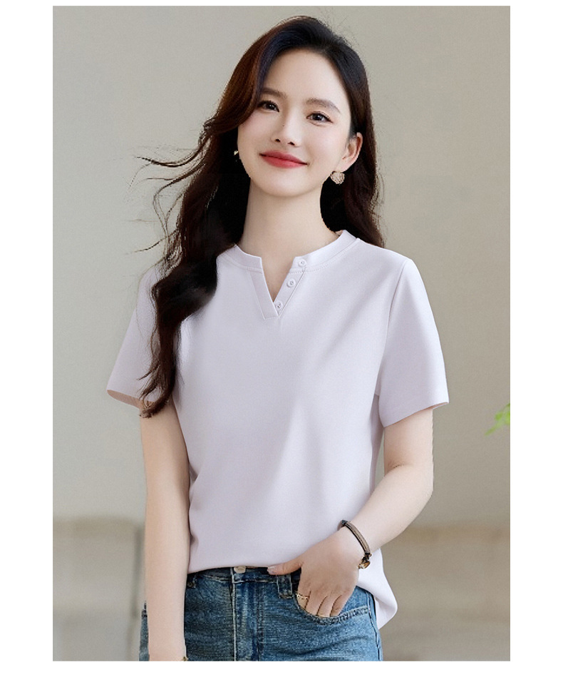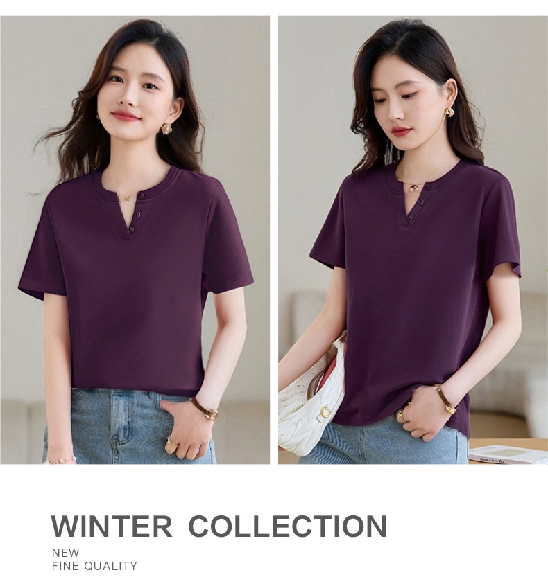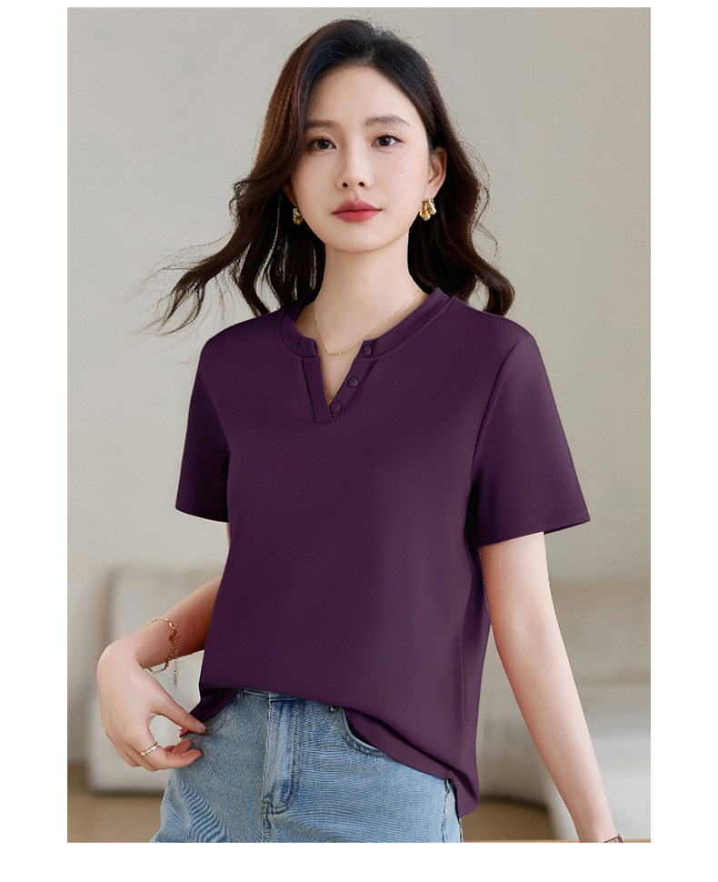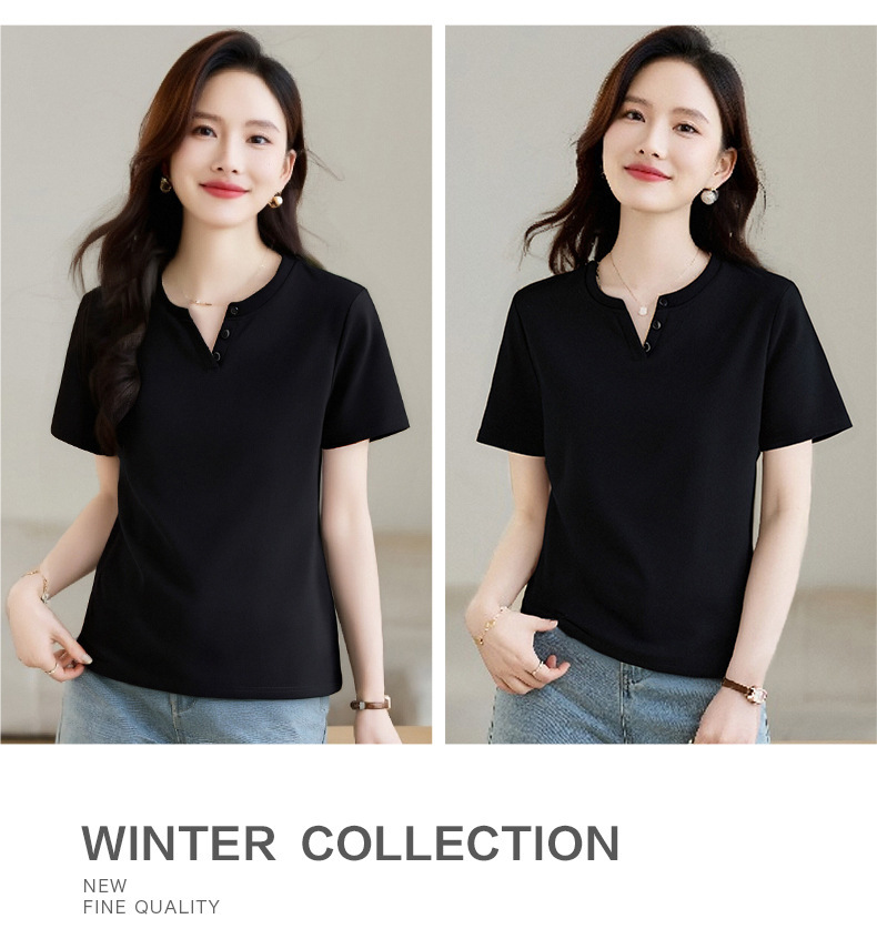 여성을위한 독특한 슬림 반팔 티셔츠 2025 여름 신작 그린 오른쪽 어깨 v 넥 반팔 세련되고 시크한 연령 감소 탑스토어 가기