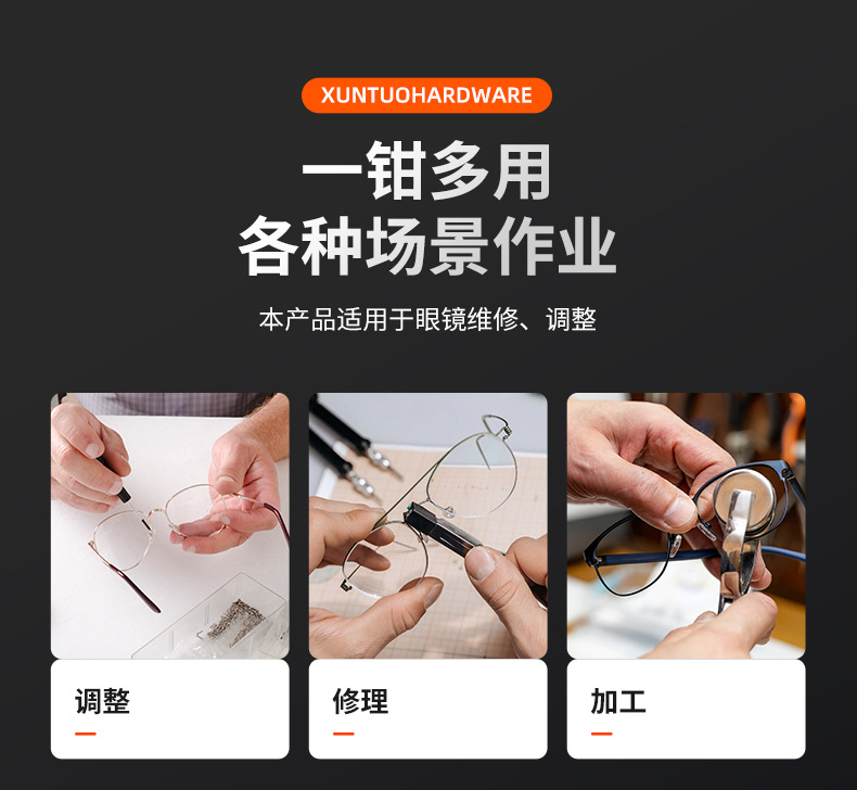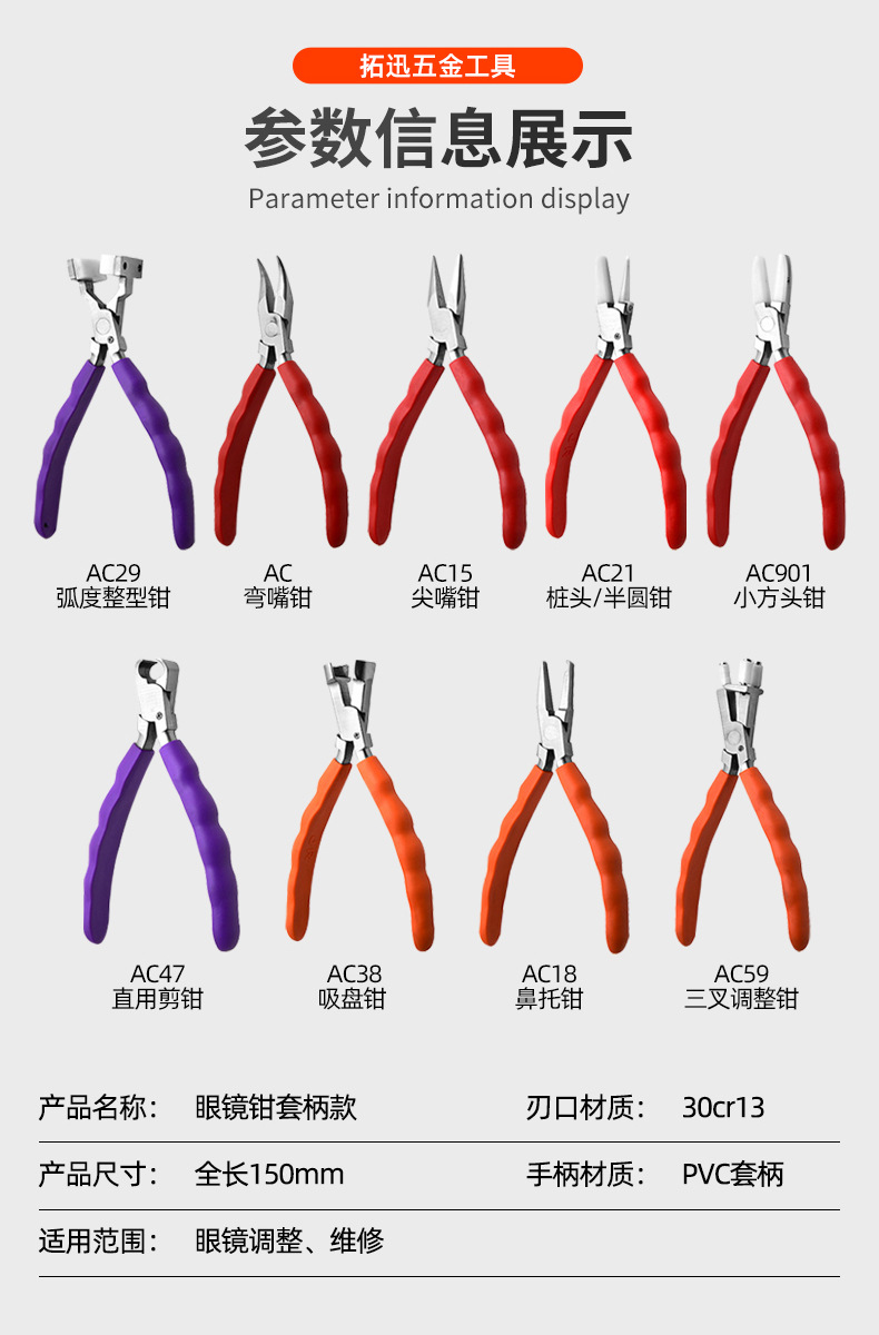 안경 도구 펜치, 코 패드 펜치 세트, 하드웨어 유지 관리 도구 제조업체, 프레임리스 컬러 핸들 펜치, 안경 수리 및 조정 펜치
