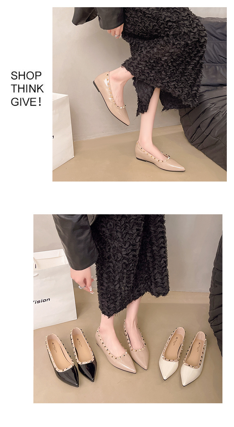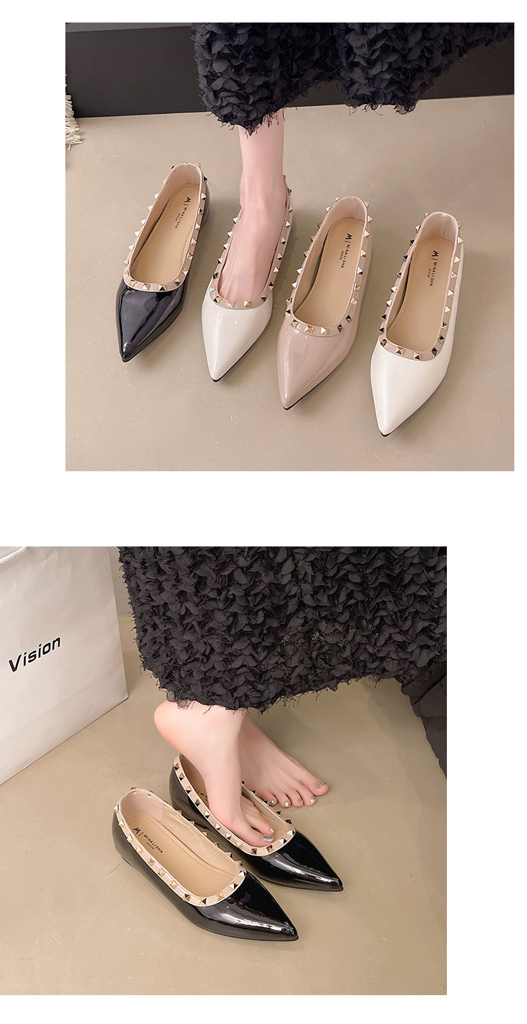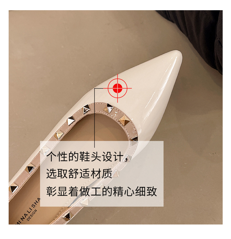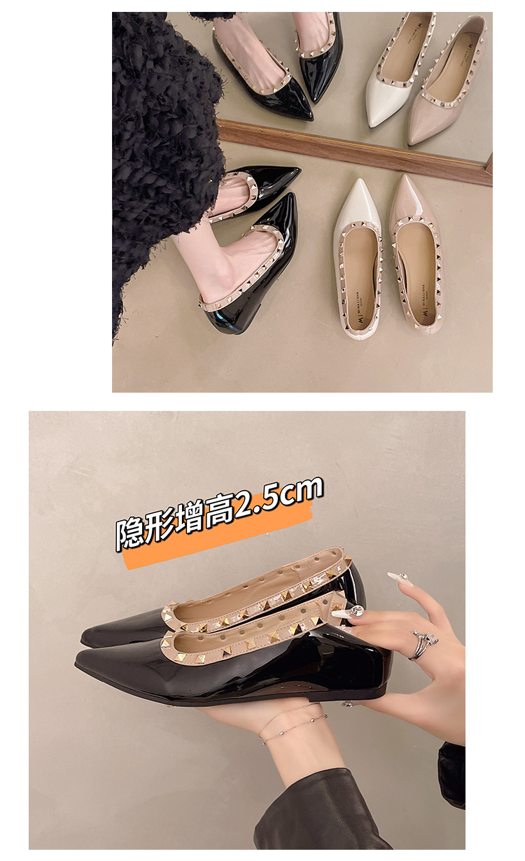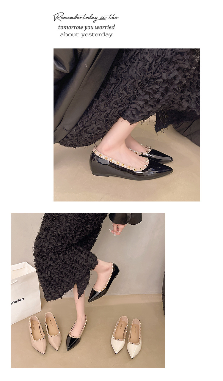 2025년 신상 프렌치 스타일 여성용 뾰족한 구두, 봄, 가을 여성용 리벳 페이턴트 가죽 이브닝 스타일, 부드럽고 부드러운 밑창스토어 가기