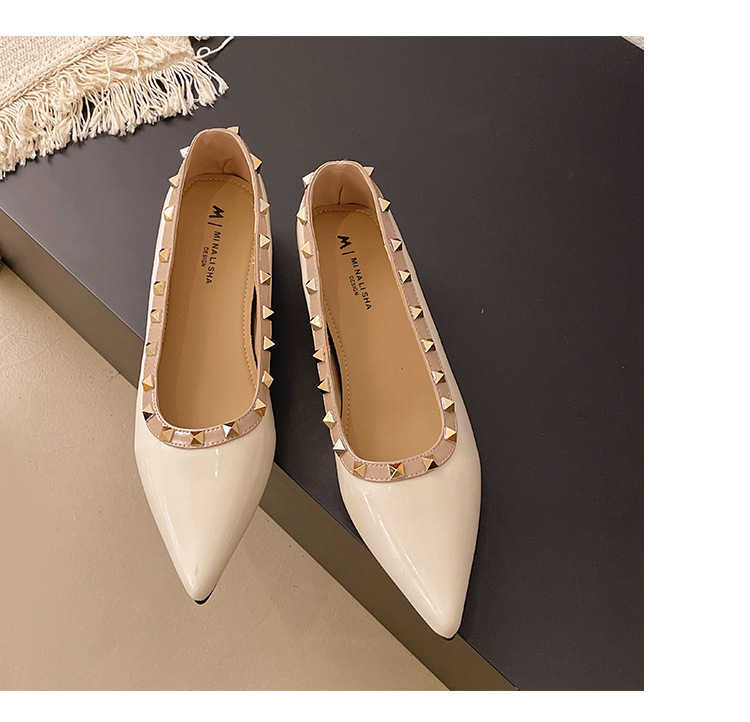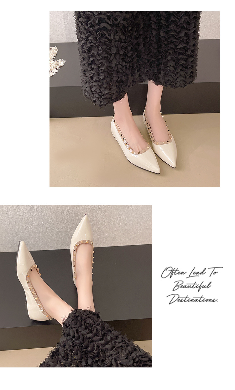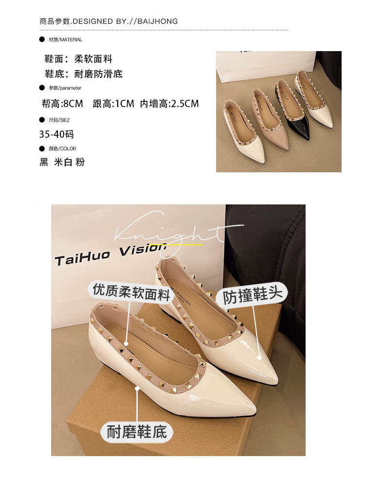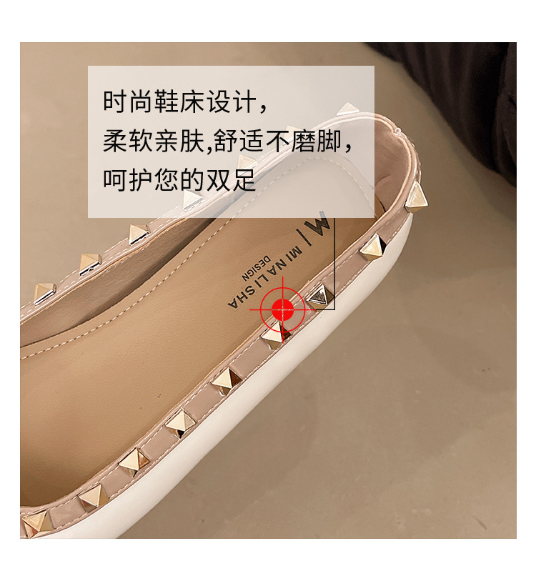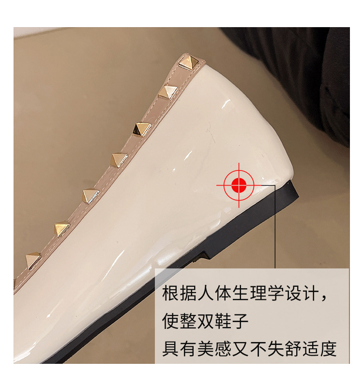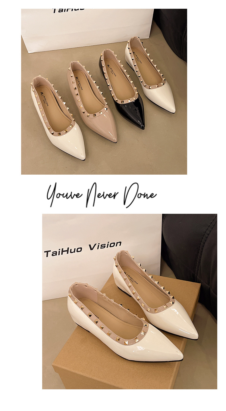 2025년 신상 프렌치 스타일 여성용 뾰족한 구두, 봄, 가을 여성용 리벳 페이턴트 가죽 이브닝 스타일, 부드럽고 부드러운 밑창스토어 가기