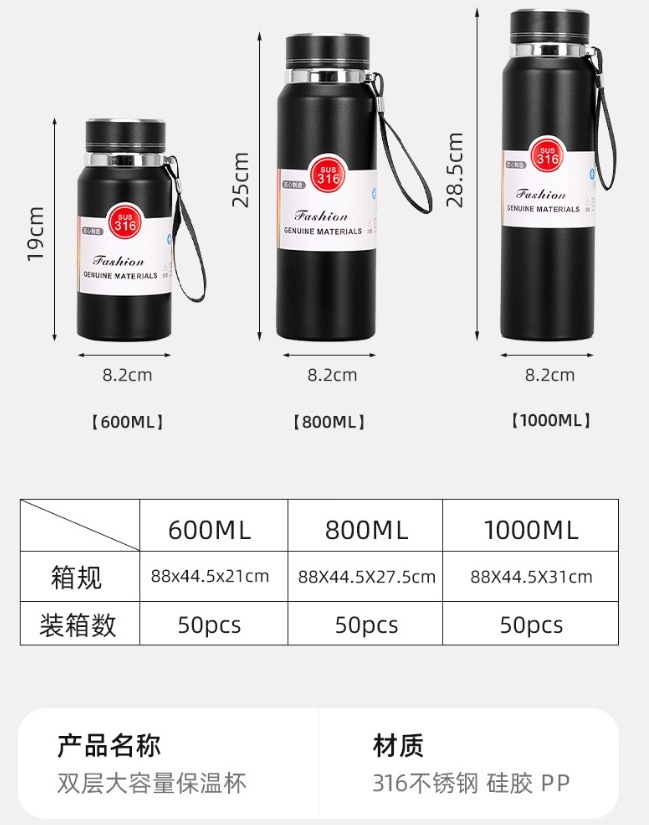 로프가 달린 스테인레스 스틸 워터 컵, 대용량 316 여행 주전자, 비즈니스 보온병 컵, 등산 티 컵, 슬링 주전자 도매스토어 가기