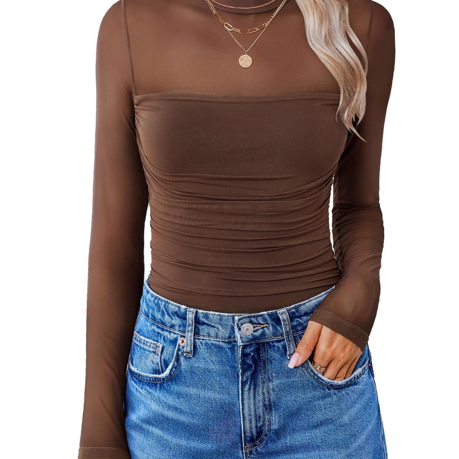 2025 새로운 유럽과 미국의 긴팔 라운드 넥 타이츠 여성용 긴팔 점프 슈트 크로스 보더 드롭 배송스토어 가기