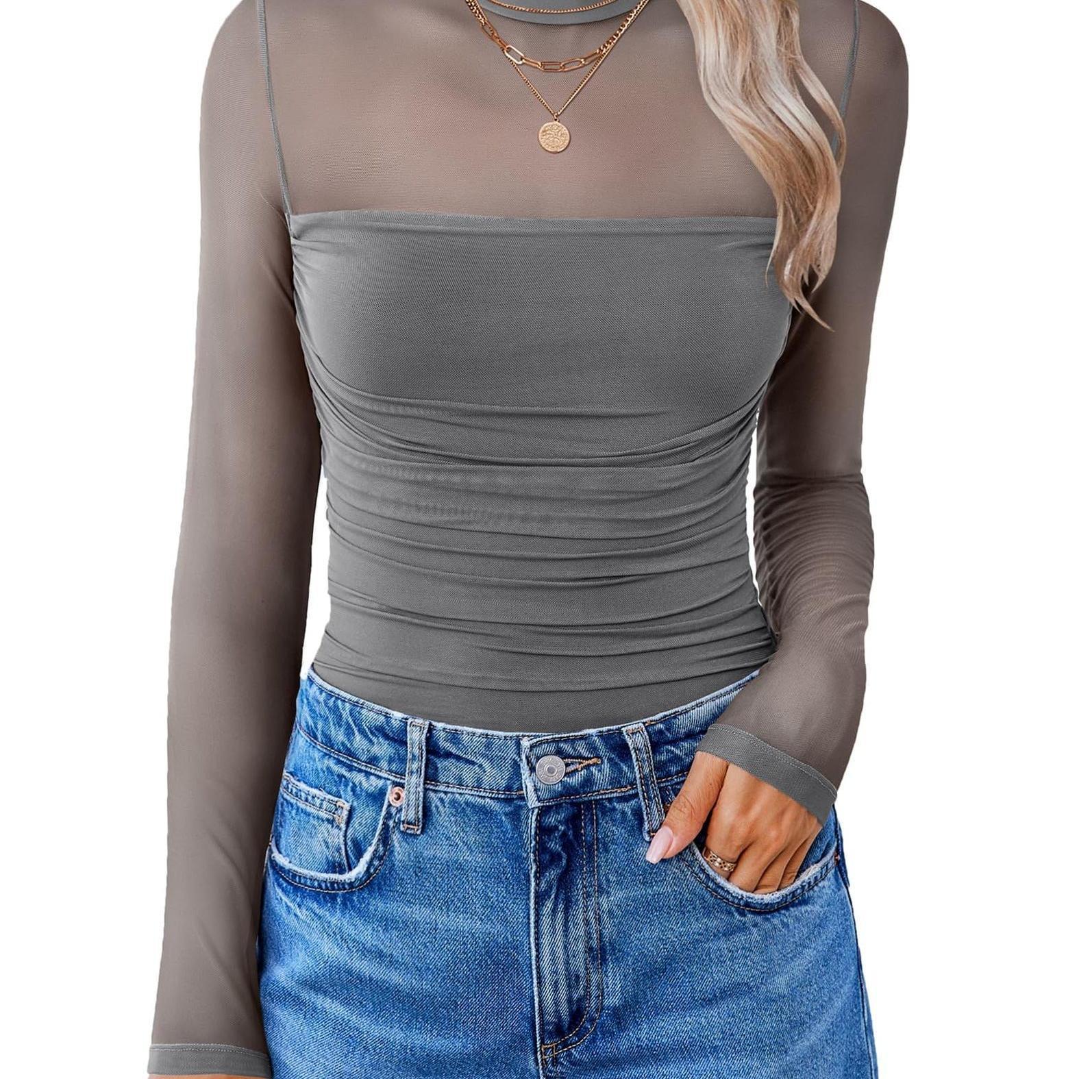 2025 새로운 유럽과 미국의 긴팔 라운드 넥 타이츠 여성용 긴팔 점프 슈트 크로스 보더 드롭 배송