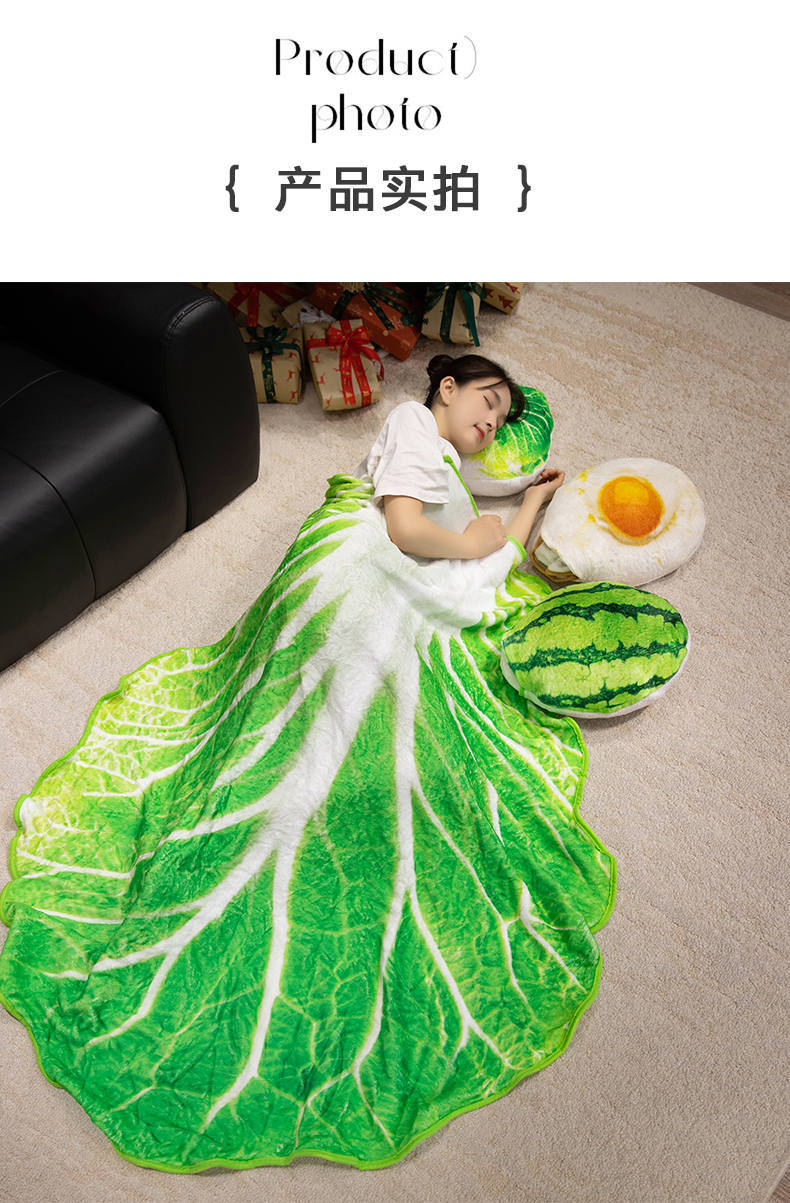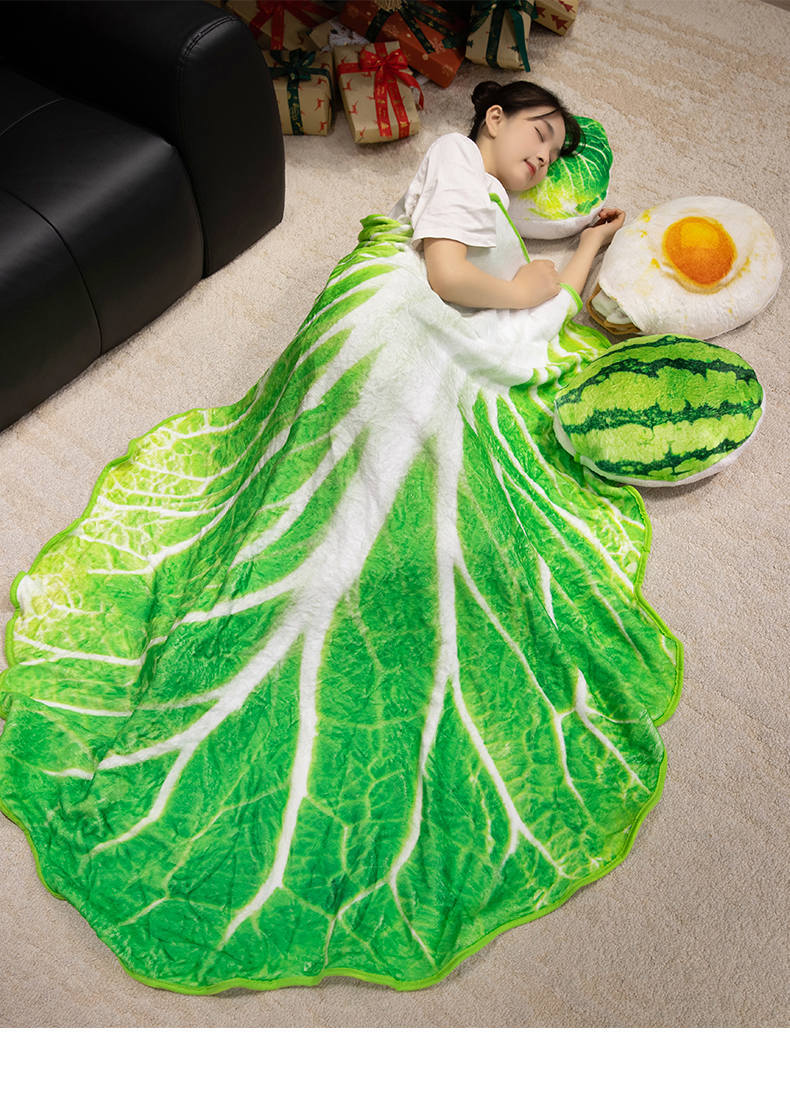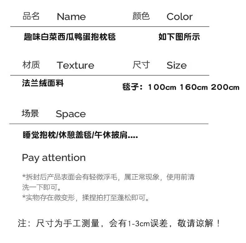 만화 시뮬레이션 배추 수박 오리 계란 베개 담요 플란넬 담요 보관 2-in-1 사무실 낮잠 담요스토어 가기