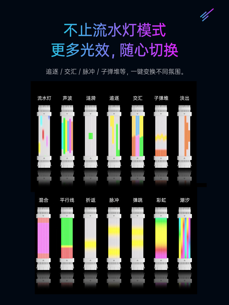 • 마더보드 24핀 흐르는 물 조명 효과 네온 라인 검정색 [컨트롤러 없음]