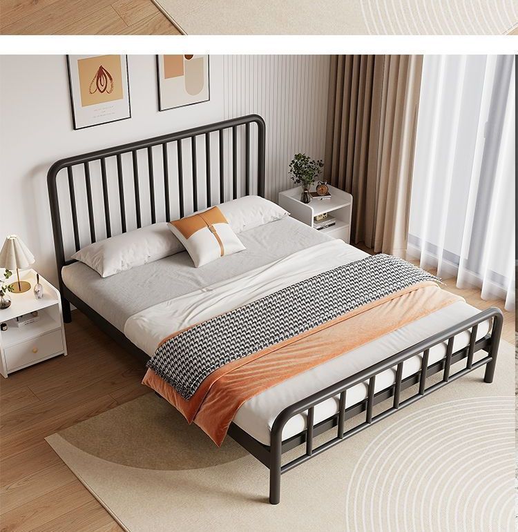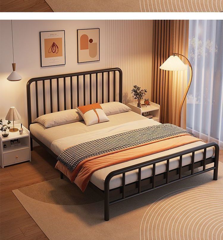 단철 침대 유럽식 강화 및 두꺼운 간단한 1.5m 더블 침대 1.8m 침대 1m 임대용 경제적인 싱글 침대