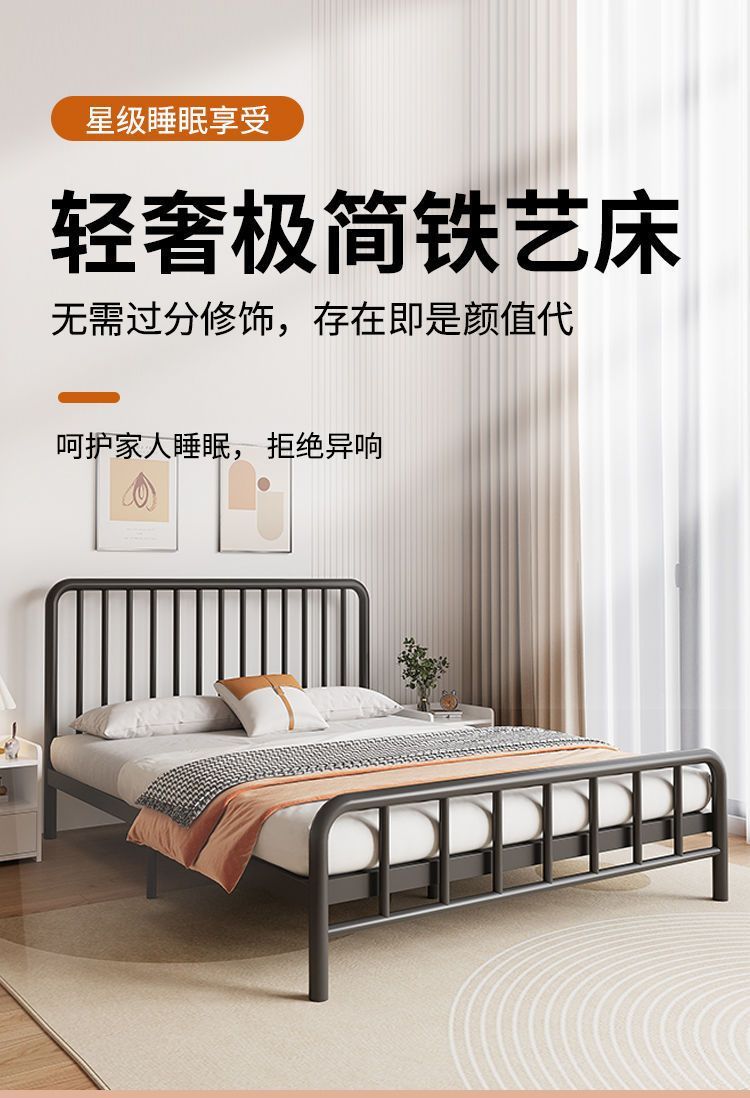 단철 침대 유럽식 강화 및 두꺼운 간단한 1.5m 더블 침대 1.8m 침대 1m 임대용 경제적인 싱글 침대스토어 가기