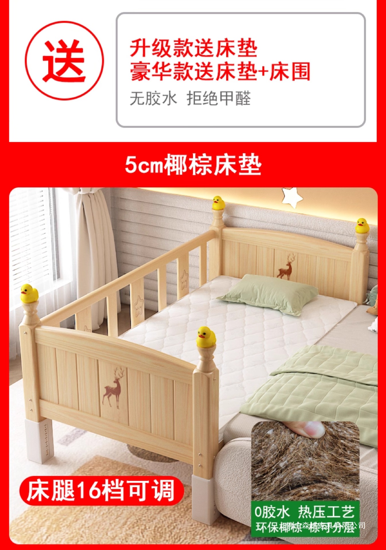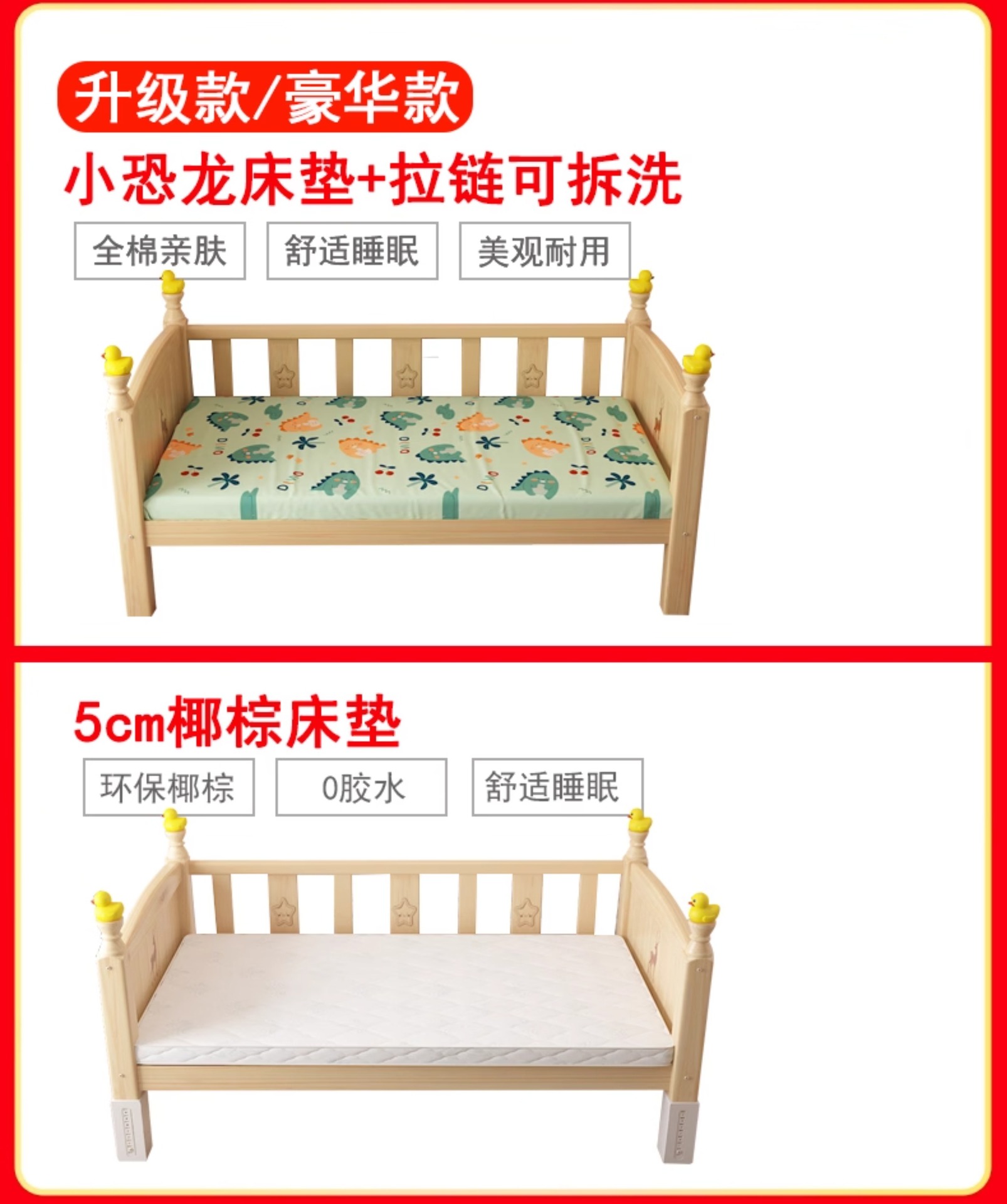 • [침대다리 16단계 조절] 침대 한쪽에는 5cm 코코넛 야자 매트리스 + A급 순면 공룡 침대 옆이 함께 제공됩니다.