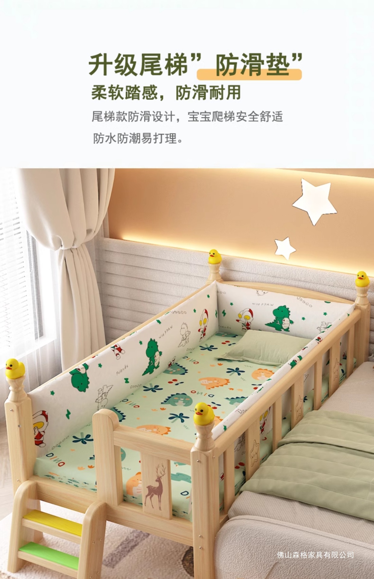 • 업그레이드된 삼면 가드레일 + 꼬리 사다리, 무료 작은 공룡 매트리스