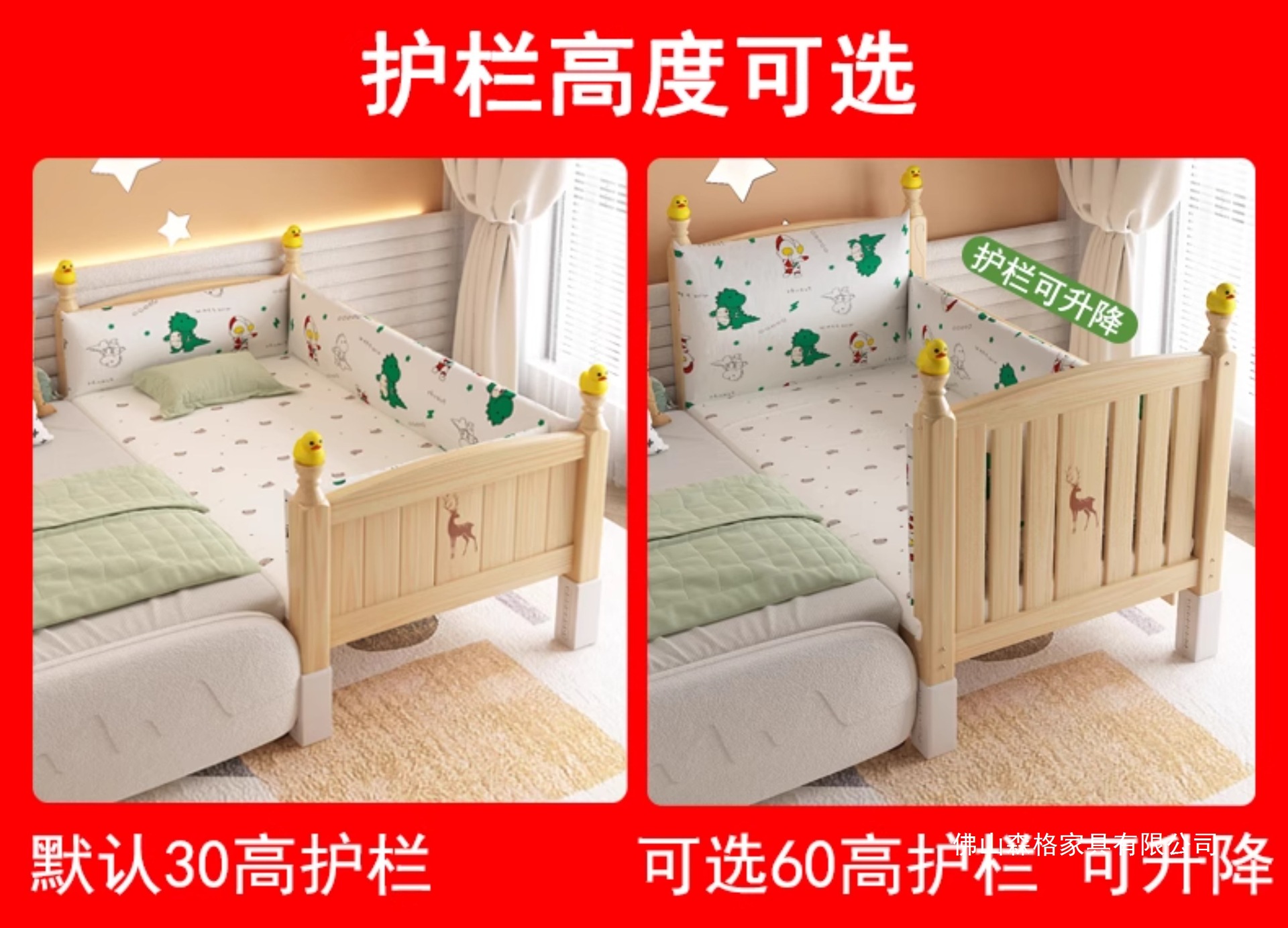• [60 높이 가드레일 사이드 리프트] (침대 다리 16단계 조절) 4면 가드레일, 무료 6cm 순면 곰 코코넛 야자 매트리스