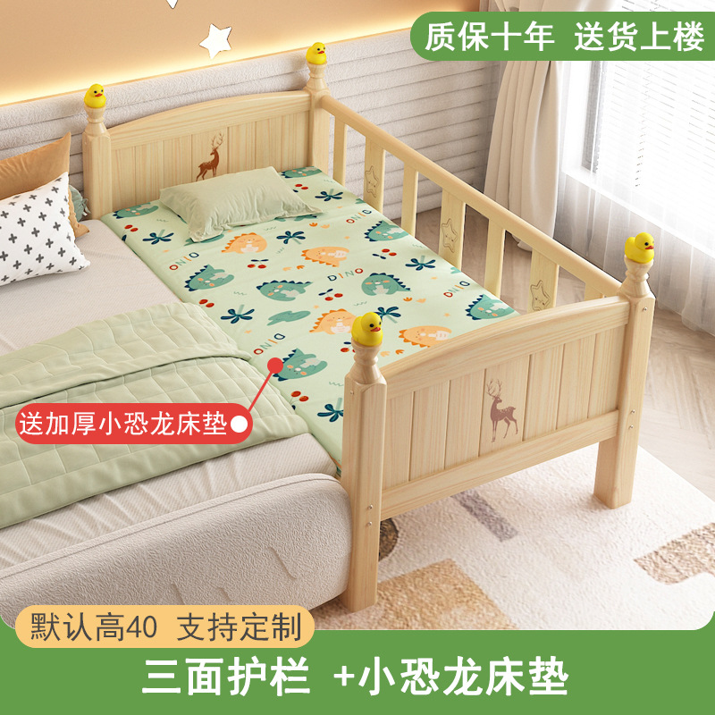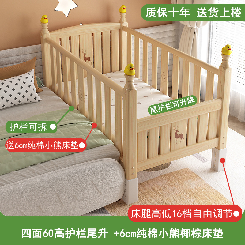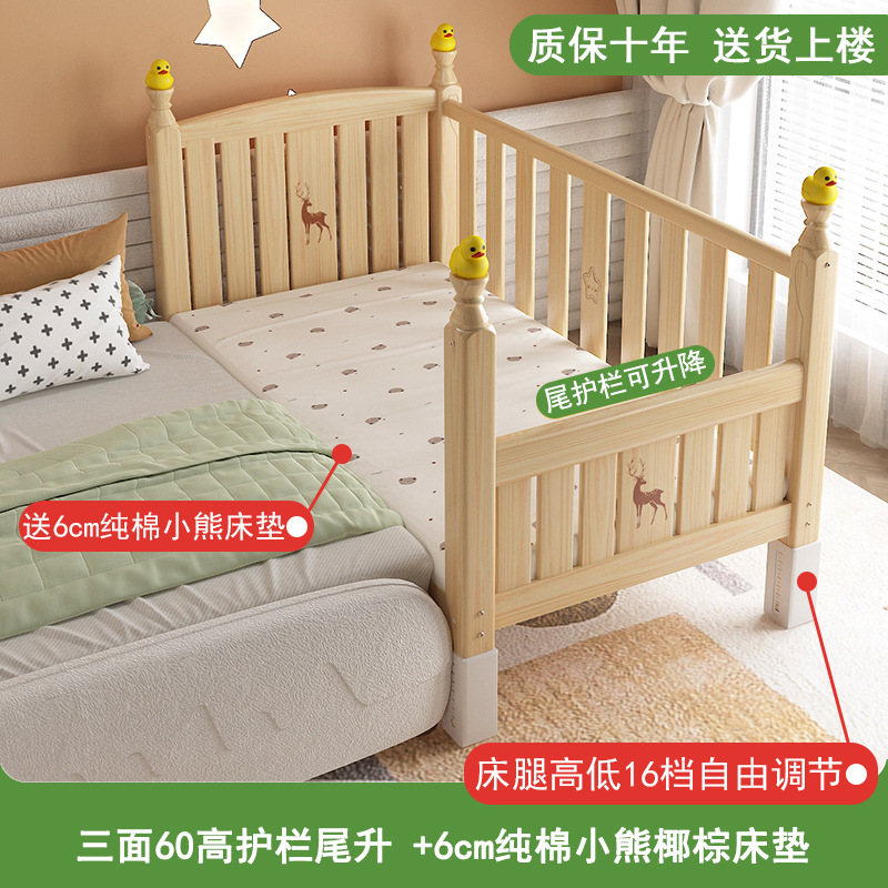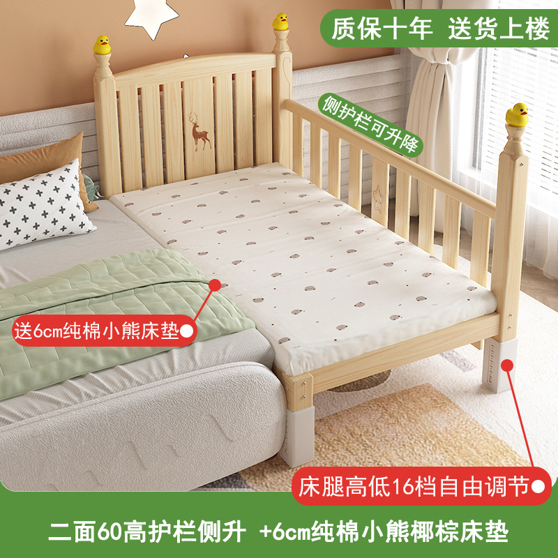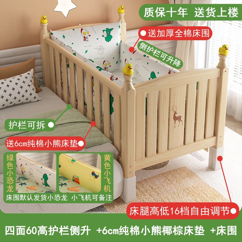 • [60 높이 가드레일 사이드 리프트] (침대 다리 16단계 조절) 삼면 가드레일, 무료 6cm 순면 곰 코코넛 야자 매트리스 + A급 순면 작은 공룡 침대 서라운더