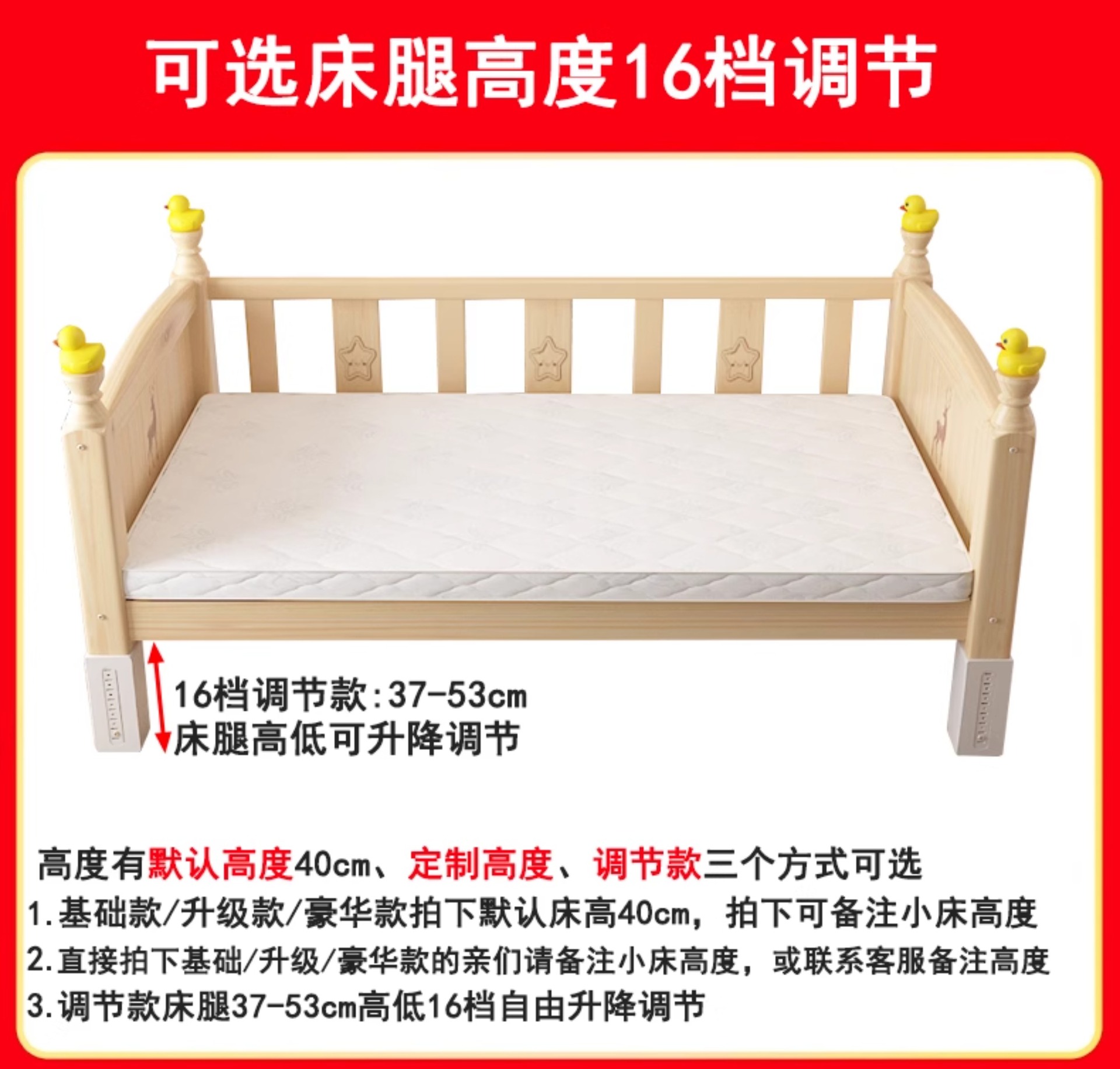• [60 높이 가드레일 테일 리프트] (침대 다리 16단계 조절) 4면 가드레일, 무료 6cm 순면 곰 코코넛 야자 매트리스