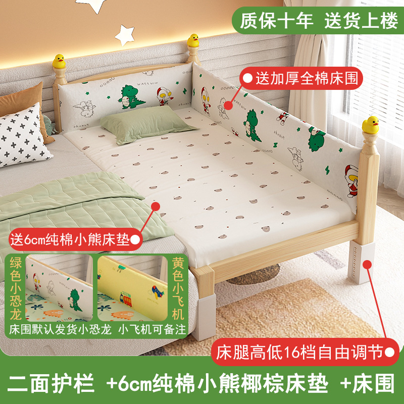 • [60 높이 가드레일 사이드 리프트] (침대 다리 16단계 조절) 4면 가드레일, 무료 6cm 순면 곰 코코넛 야자 매트리스 + 클래스 A 순면 작은 공룡 침대 서라운더