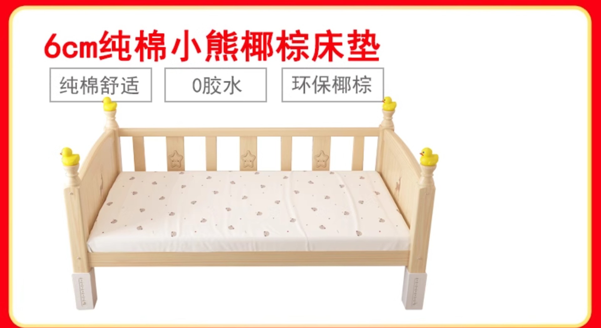 • [60 높이 가드레일 사이드 리프트] (침대 다리 16단계 조절) 양면 가드레일, 무료 6cm 순면 곰 코코넛 야자 매트리스