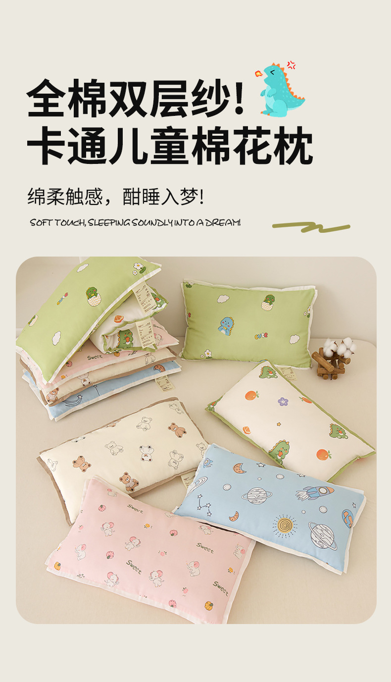 클래스 A 순면 더블 레이어 원사 어린이 베개 면 베개 코어 베개 커버 유치원 어린이 어린이 낮은 베개 기계 세탁 가능스토어 가기