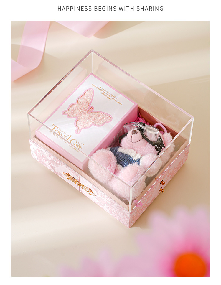 곰돌이 수건 기념품, 결혼식 신부 들러리 선물, 신랑 들러리 선물, 아기 답례품, 산호벨벳 선물 상자, 크림풍 수건