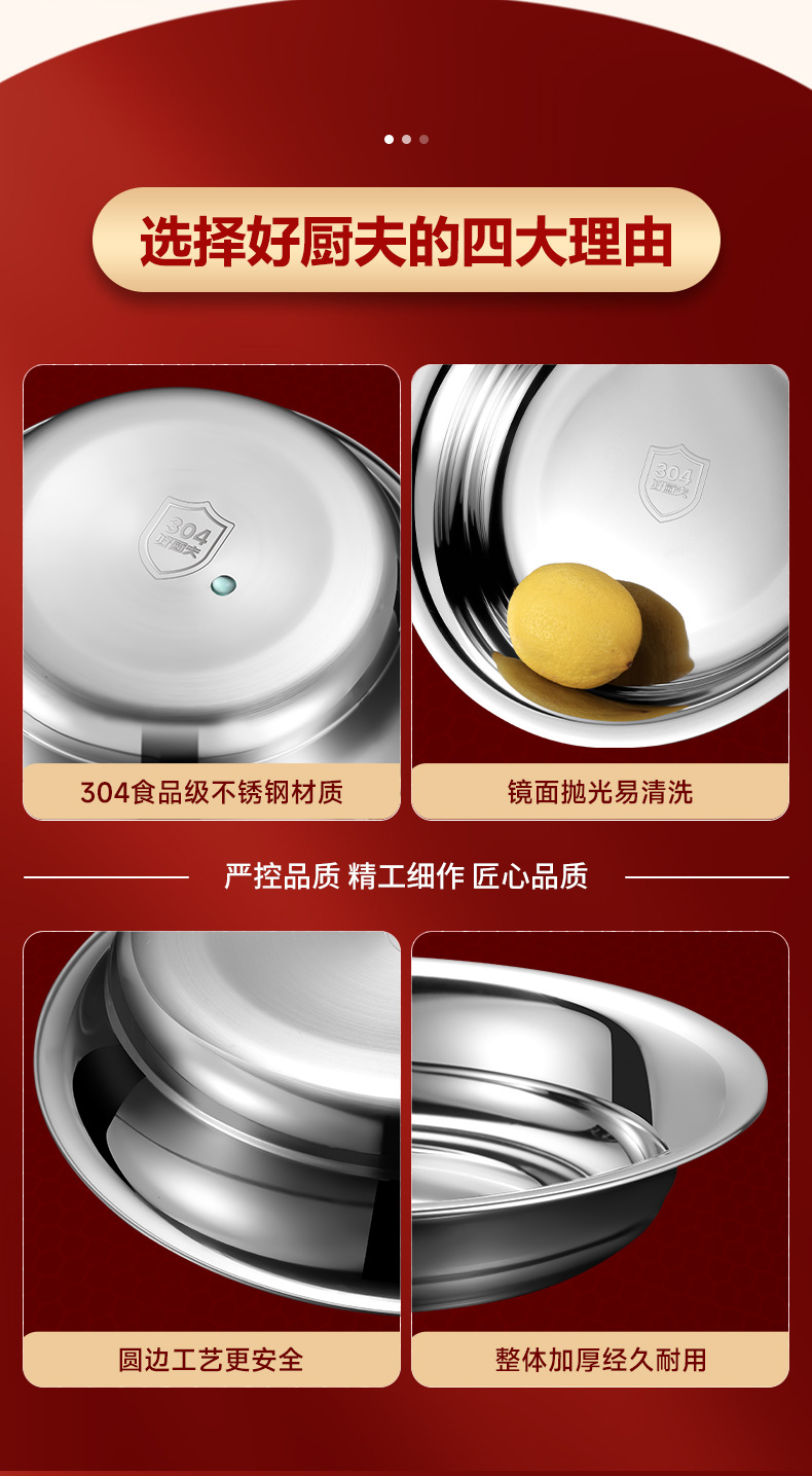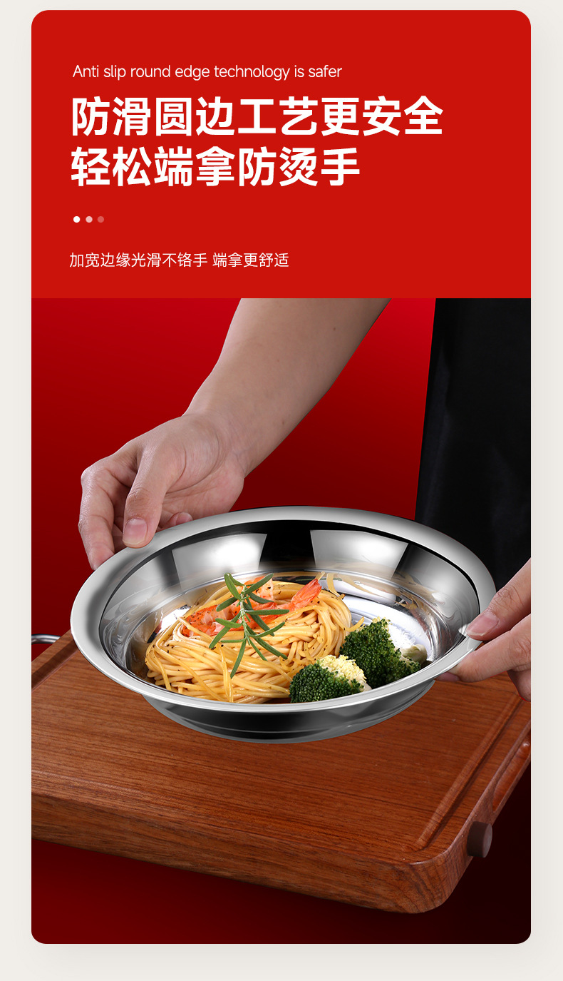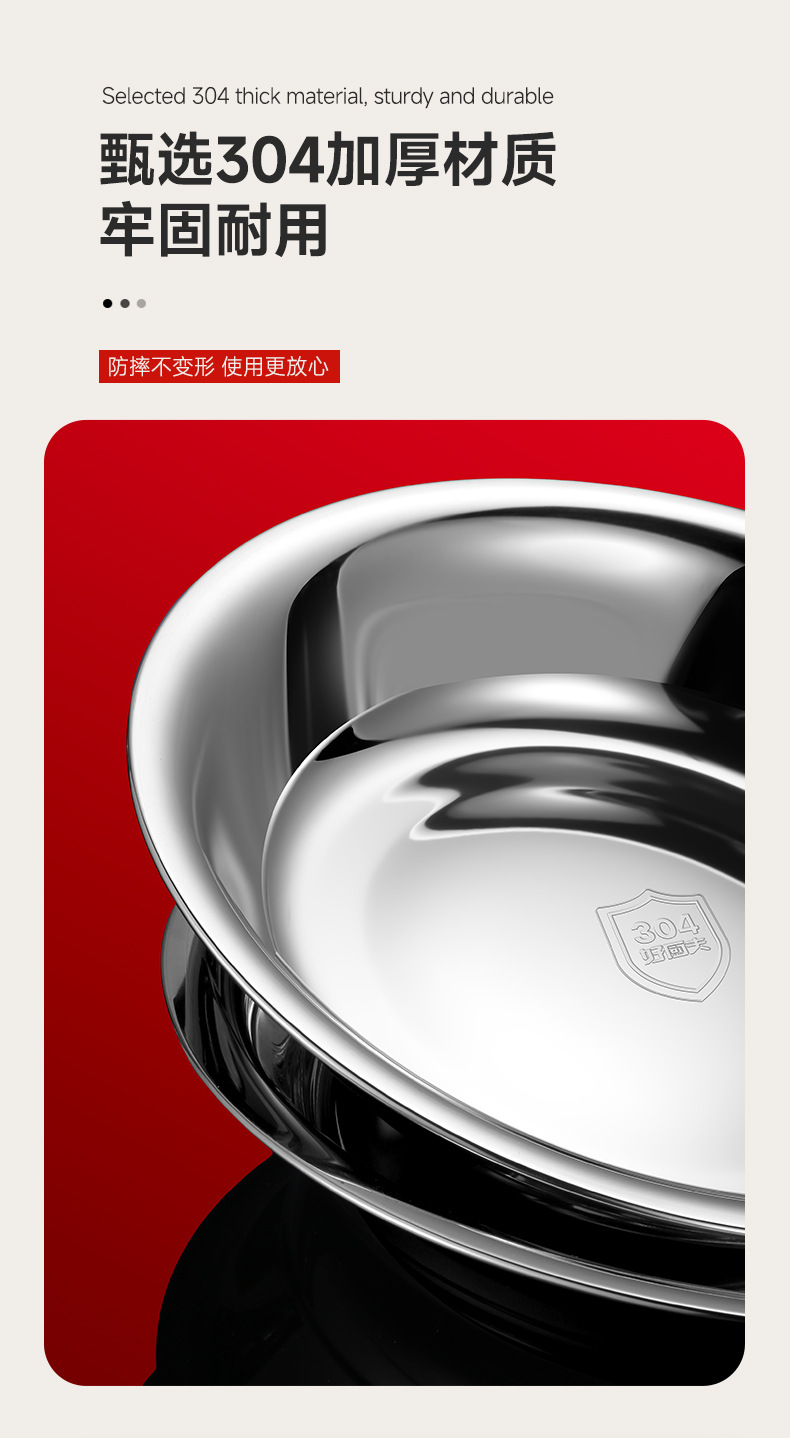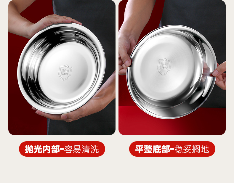 304 원형 디스크 깊은 접시 두꺼운 스테인레스 스틸 대형 접시 가정용 상업용 케이크 접시 캔틴 디너 접시 대형 찜 접시 밥 접시스토어 가기
