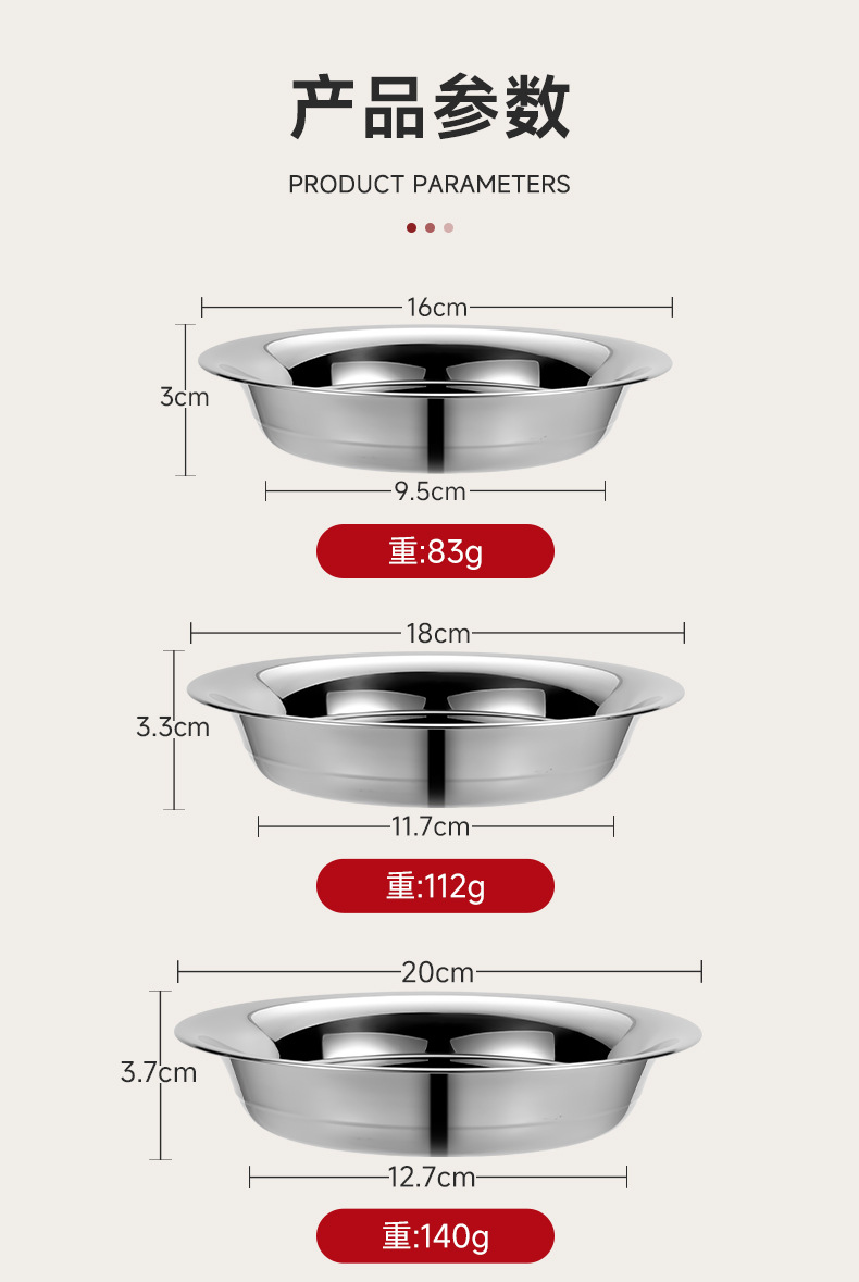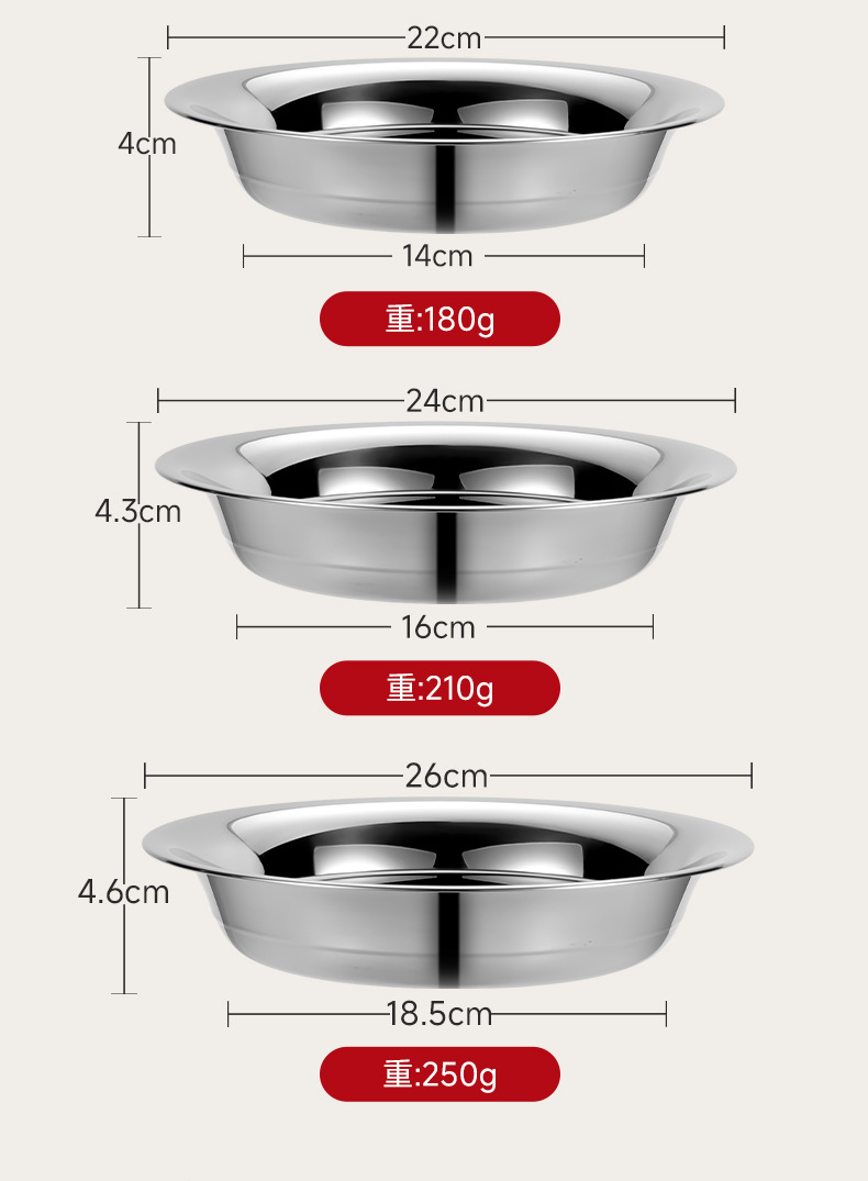 304 원형 디스크 깊은 접시 두꺼운 스테인레스 스틸 대형 접시 가정용 상업용 케이크 접시 캔틴 디너 접시 대형 찜 접시 밥 접시
