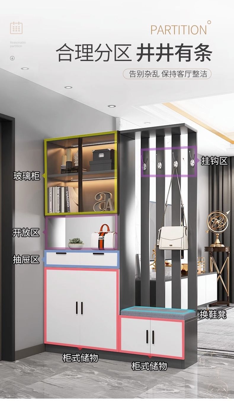 현관 캐비닛, 거실 입구 직전 신발장, 스크린 칸막이 캐비닛, 신발 교체용 스툴, 일체형 현관 캐비닛, 수납장
