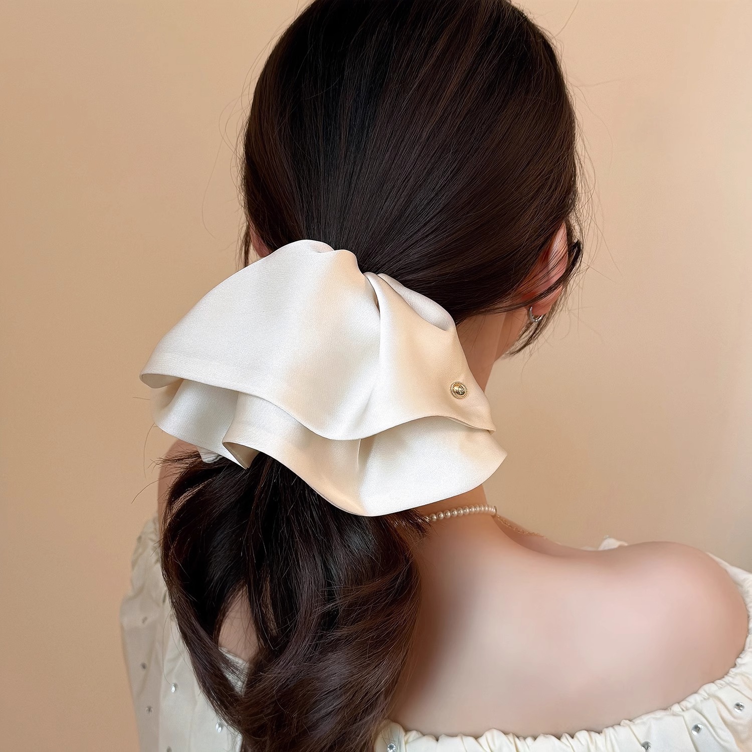여성용 새틴 라지 스커트 포니테일 머리핀, 뒷머리에 반묶음 머리핀, 우아하고 고급스러운 샤크핀 머리핀스토어 가기