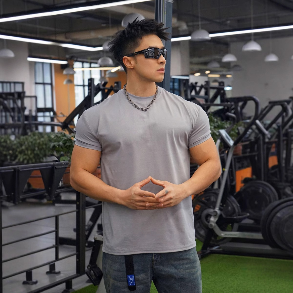 브라더스 피트니스 운동복 코튼 커프 반팔 남성용 농구 러닝 트레이닝 솔로나 스트레치 스포츠 티셔츠 남성용스토어 가기