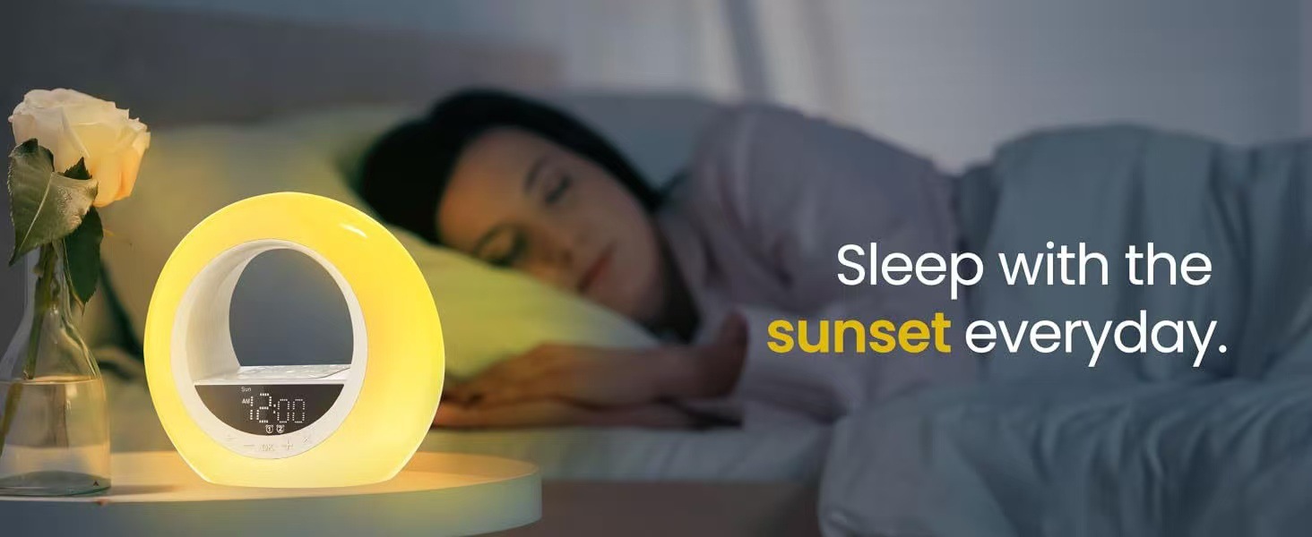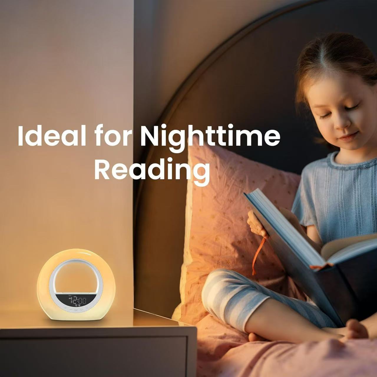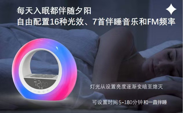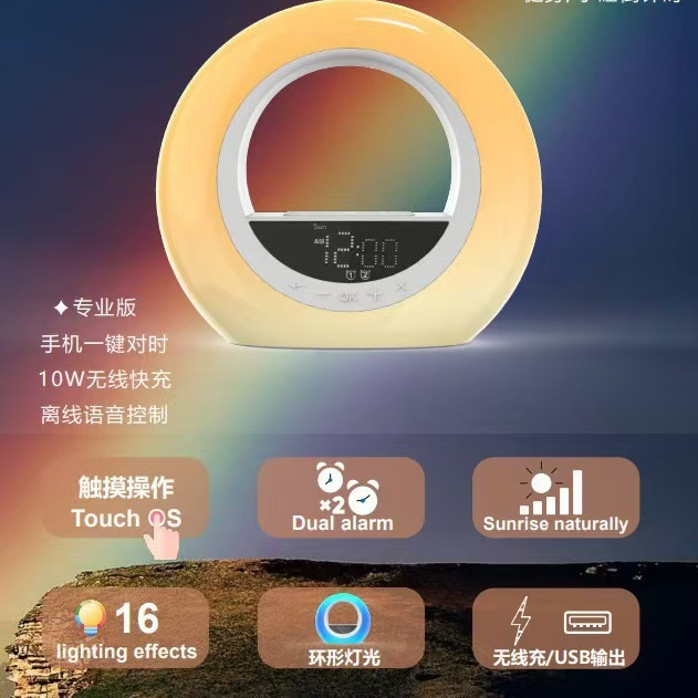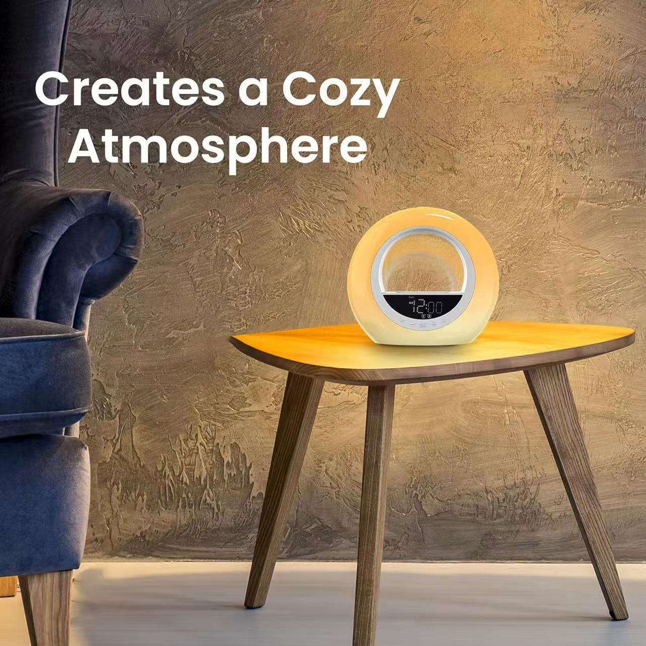 새로운 시뮬레이션 일출 일 웨이크 업 라이트 백색 소음 수면 알람 시계 침실 테이블 램프 LED 로맨틱 선물 분위기 램프