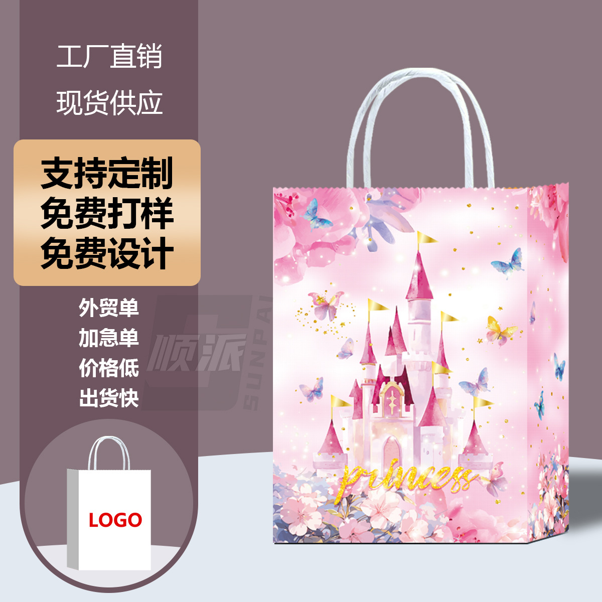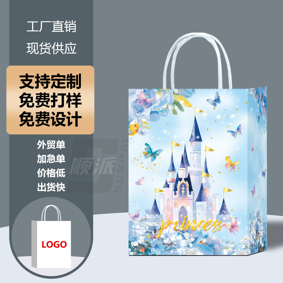 국경 간 종이 가방 핸드백 블루 캐슬 핑크 판타지 크래프트 종이 가방 선물 가방 하이 엔드 라이트 럭셔리 쇼핑백