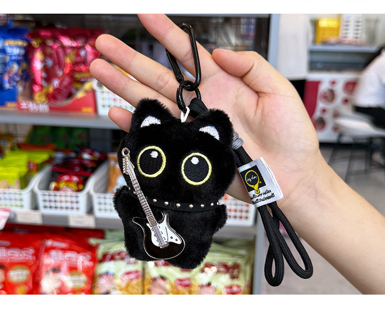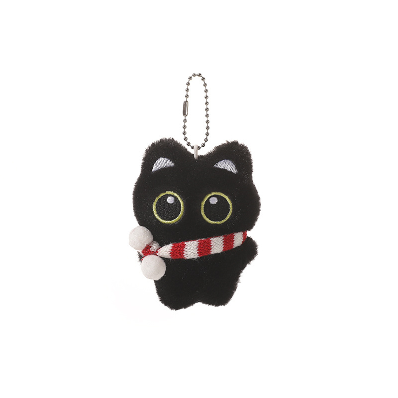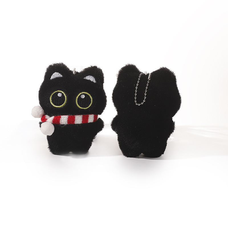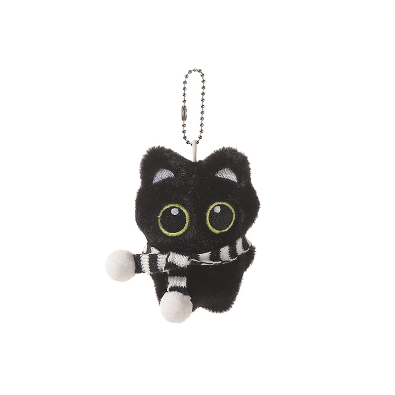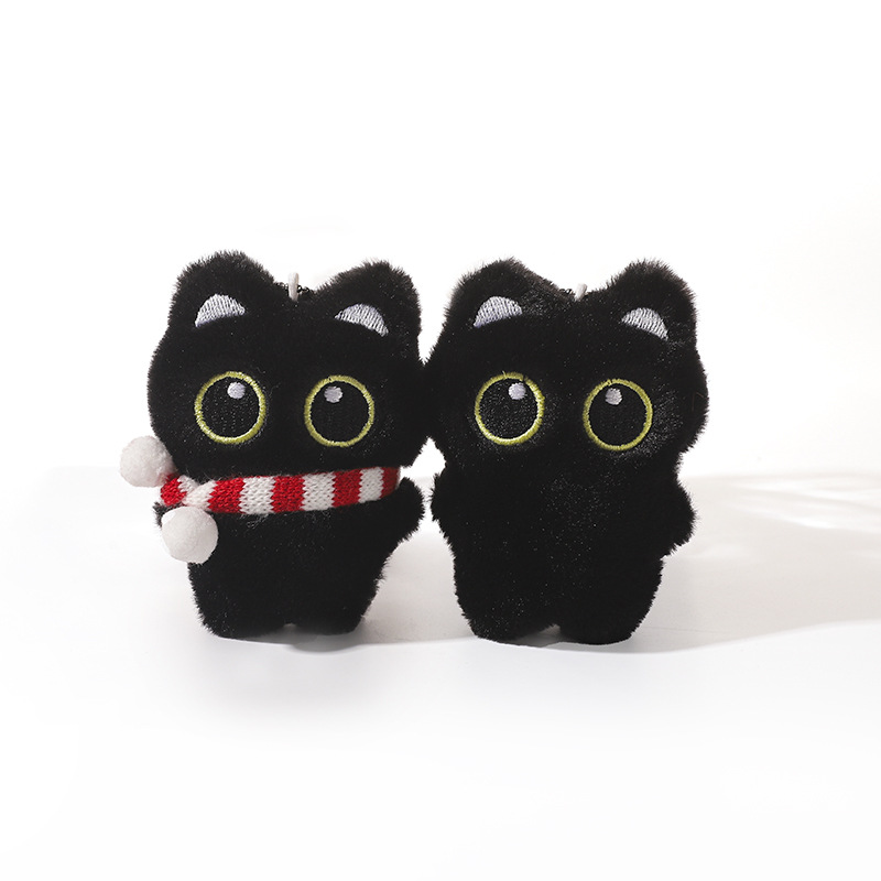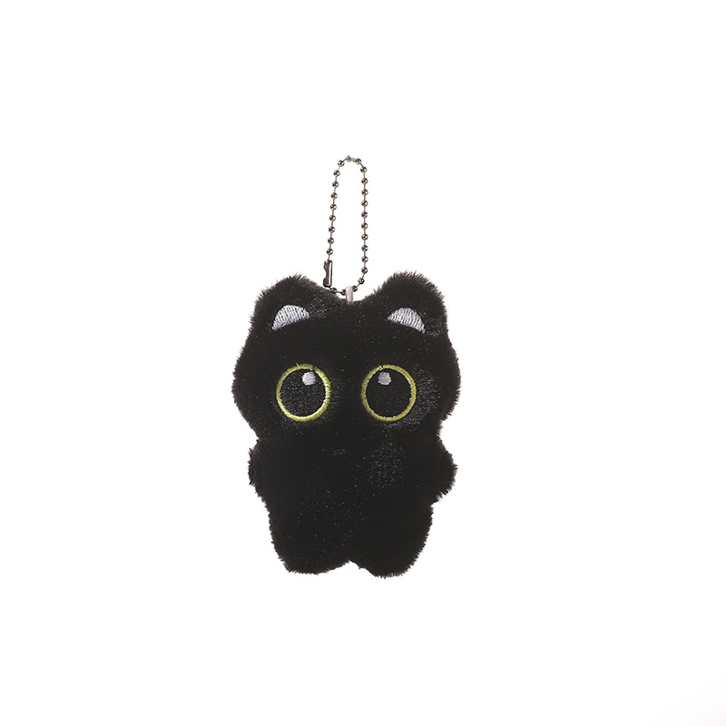 新款大眼黑猫吱吱叫毛绒公仔挂件可爱黑色小猫咪毛绒玩具情侣礼物尺寸:长8cm*宽3cm*高10cm