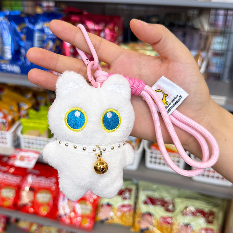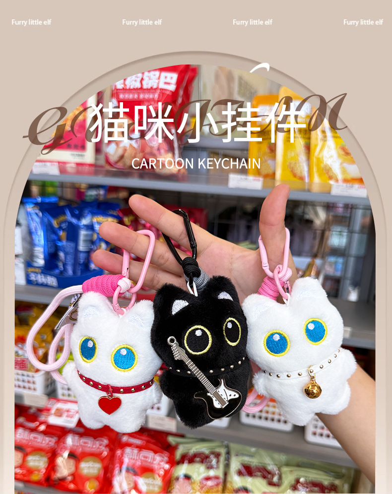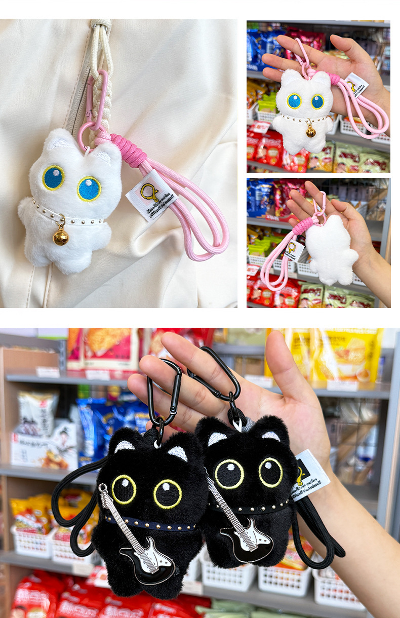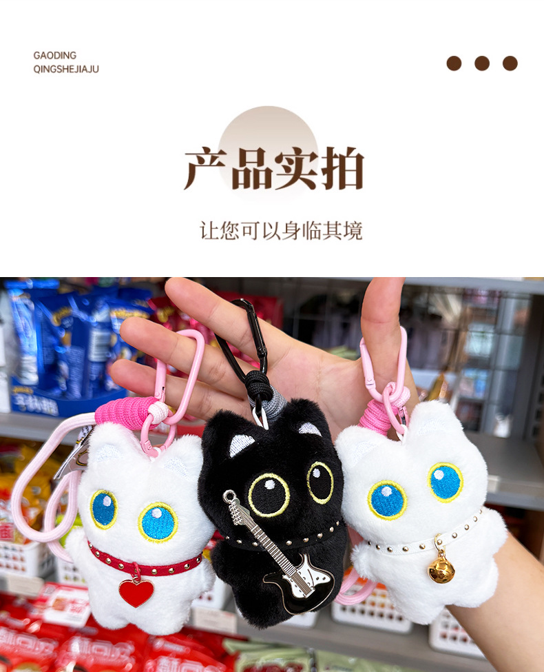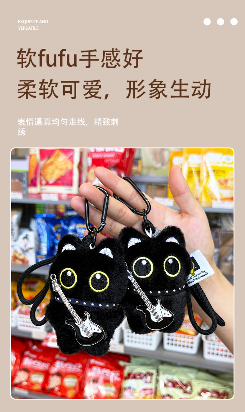 新款大眼黑猫吱吱叫毛绒公仔挂件可爱黑色小猫咪毛绒玩具情侣礼物尺寸:长8cm*宽3cm*高10cm
