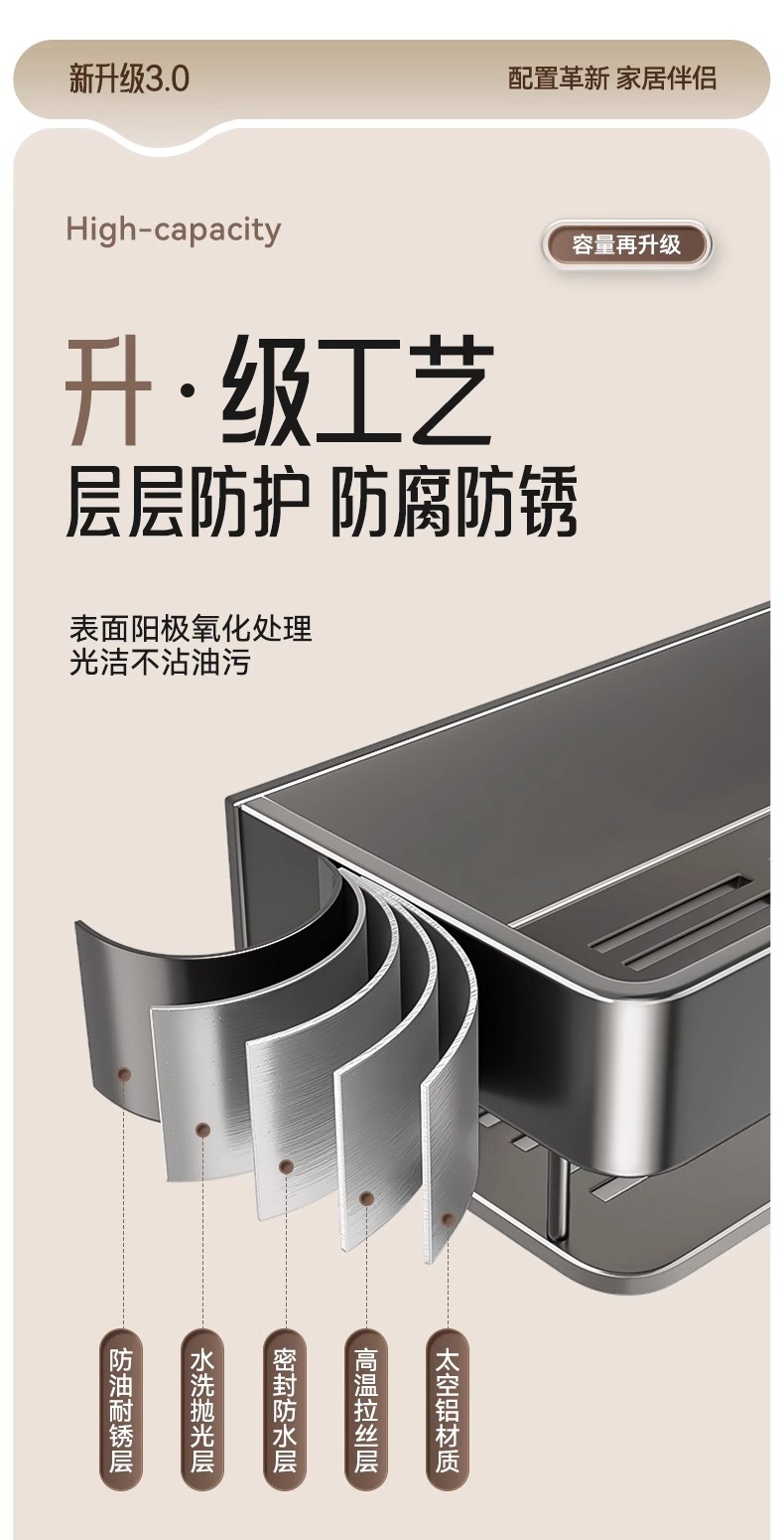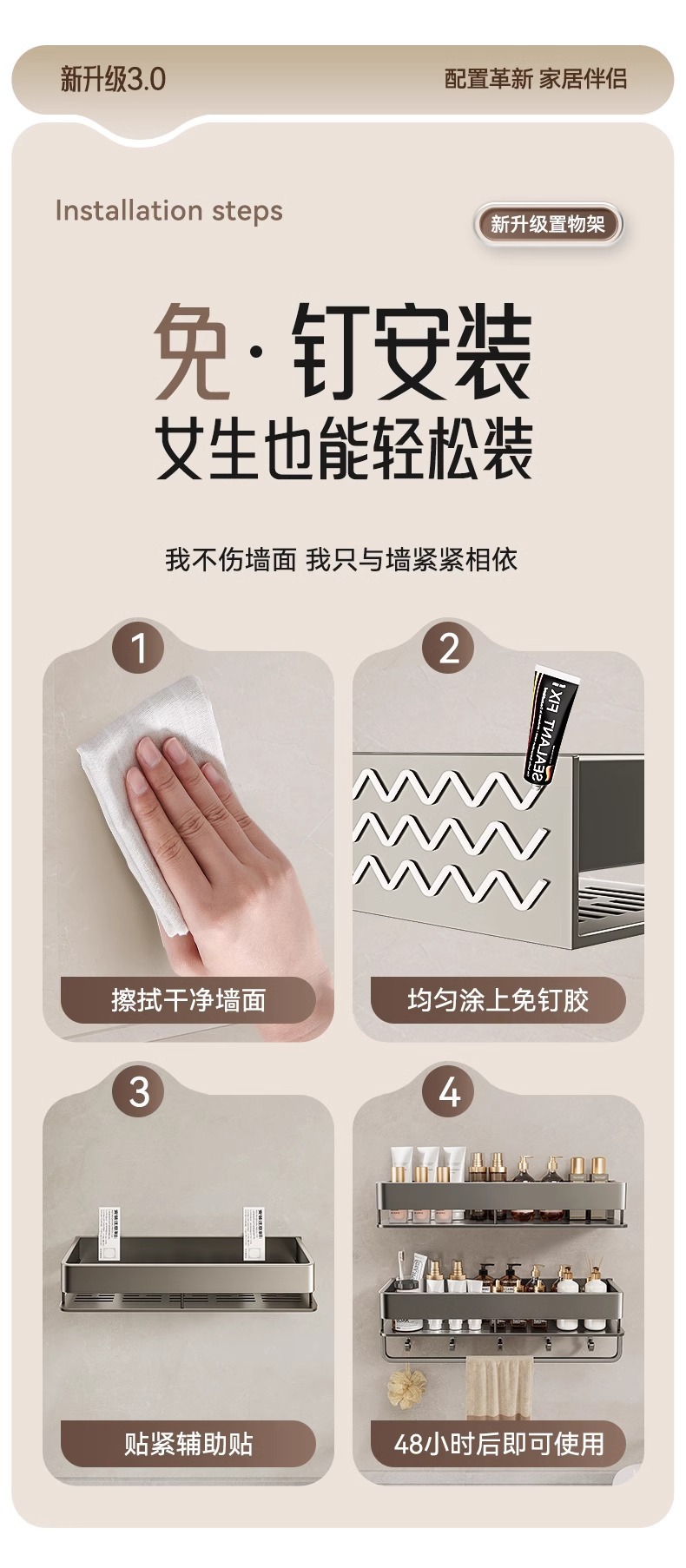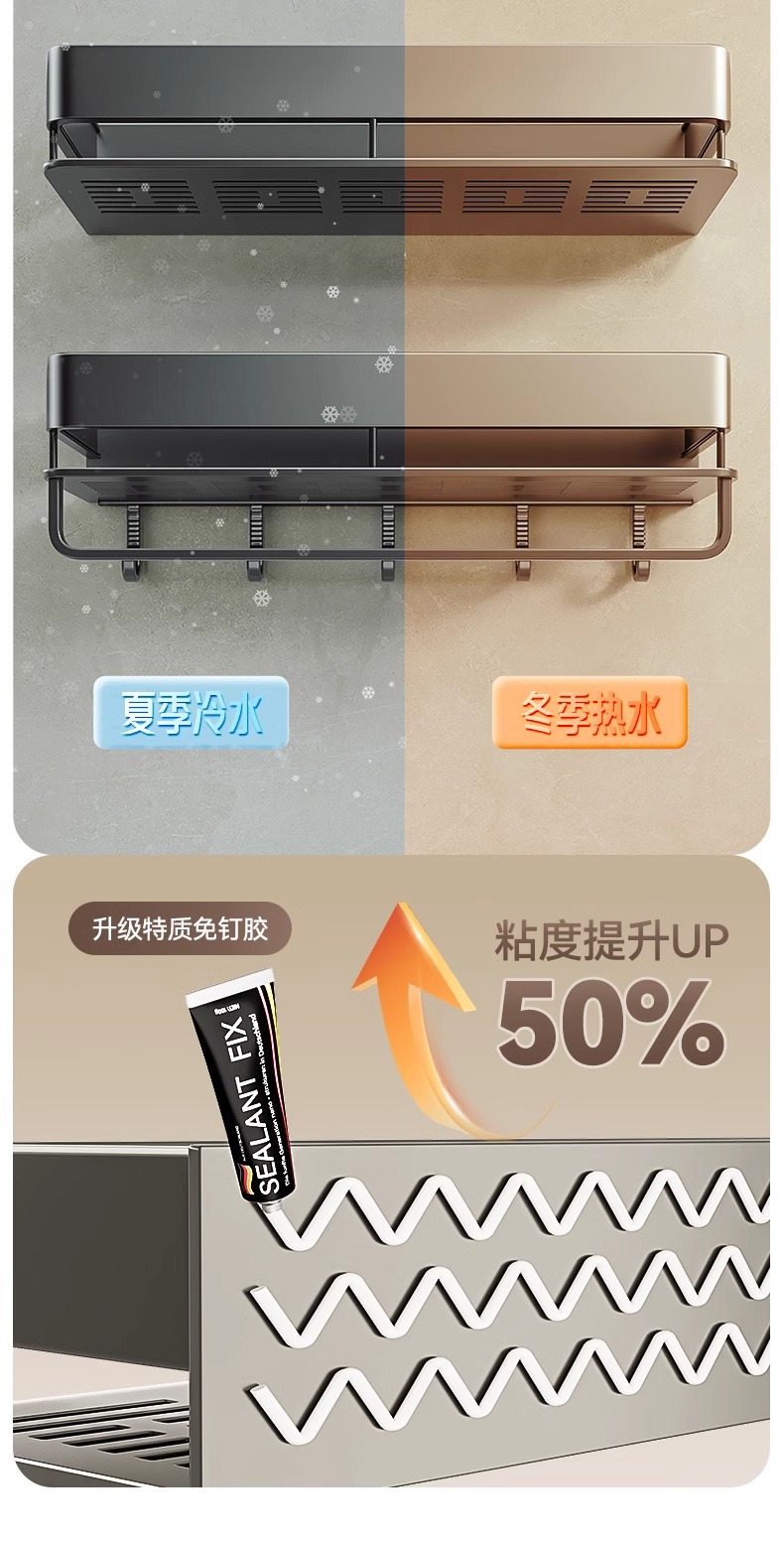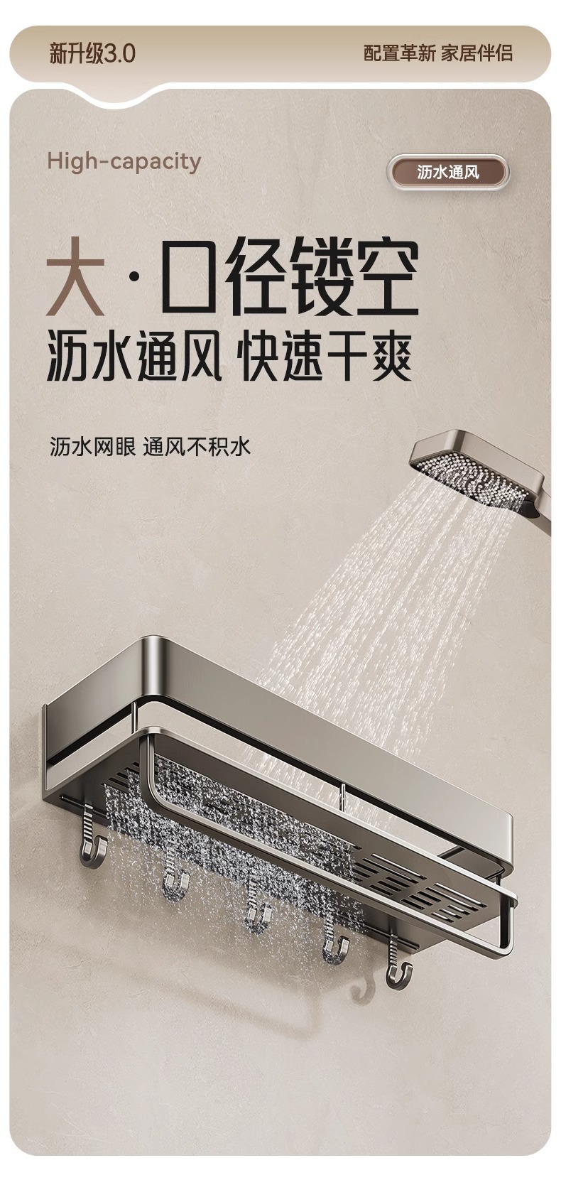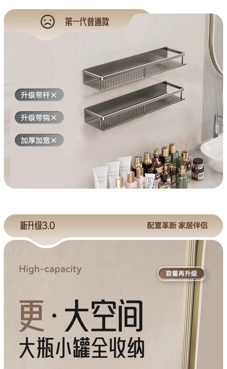 浴室加粗加厚四方篮免打孔墙上置物架可通风沥水挂架带毛巾杆的架子浴室可挂搓澡巾的置物架上下间距可调节置物架加粗加厚方形篮不生锈的浴室收纳神器洗漱用品收纳篮