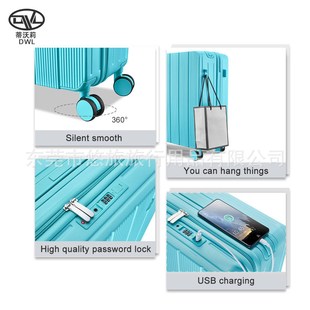PC 와이드 트롤리 가방 TSA 탑승 케이스 남성과 여성 학생 파티 여행 필수 USB 충전 포트 가방