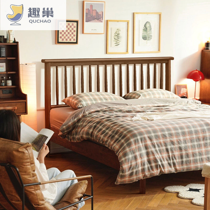 북유럽 원목 침대 심플 싱글 모던 심플 윈저 1.5 마스터 침실 일본식 더블 1.8 로그 B&B스토어 가기