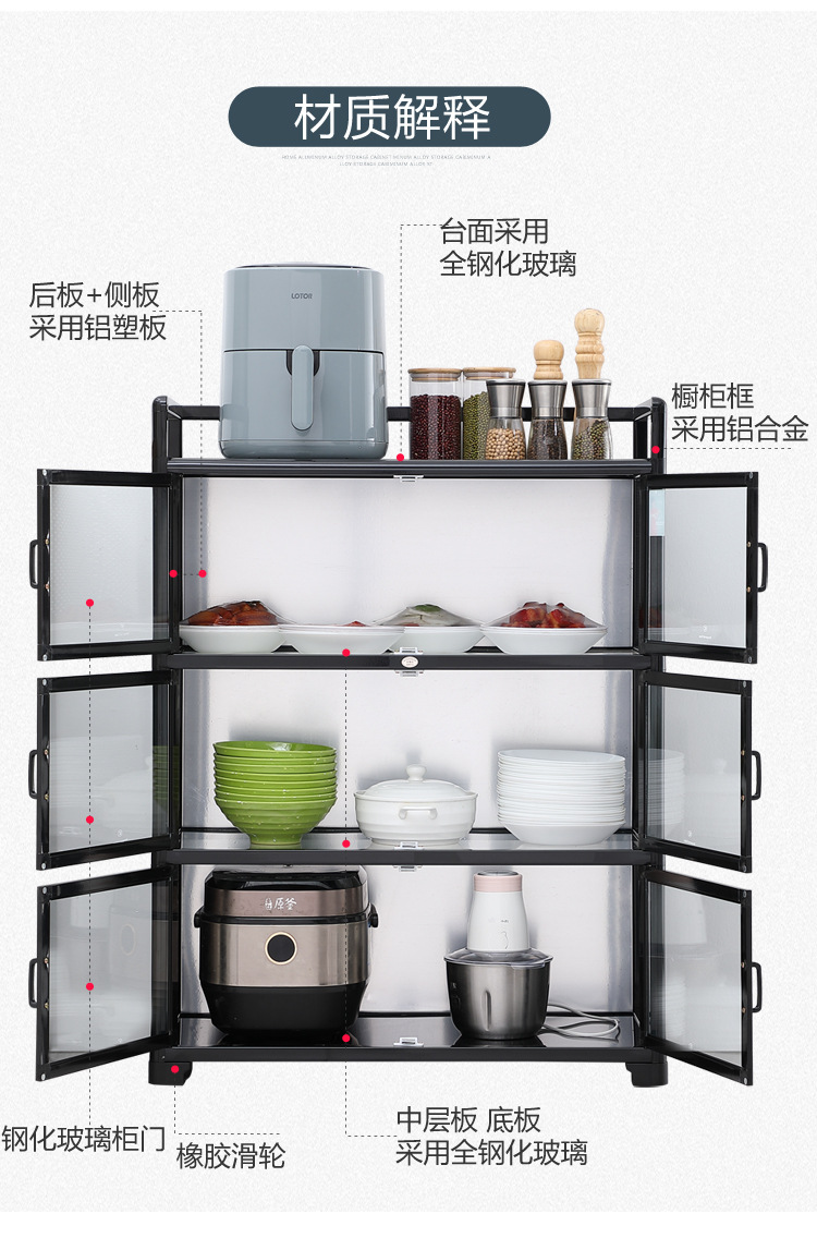 알루미늄 합금 찬장 주방 캐비닛 보관 캐비닛 차 캐비닛 다기능 가정용 찬장 현대 간단한 보관 캐비닛스토어 가기