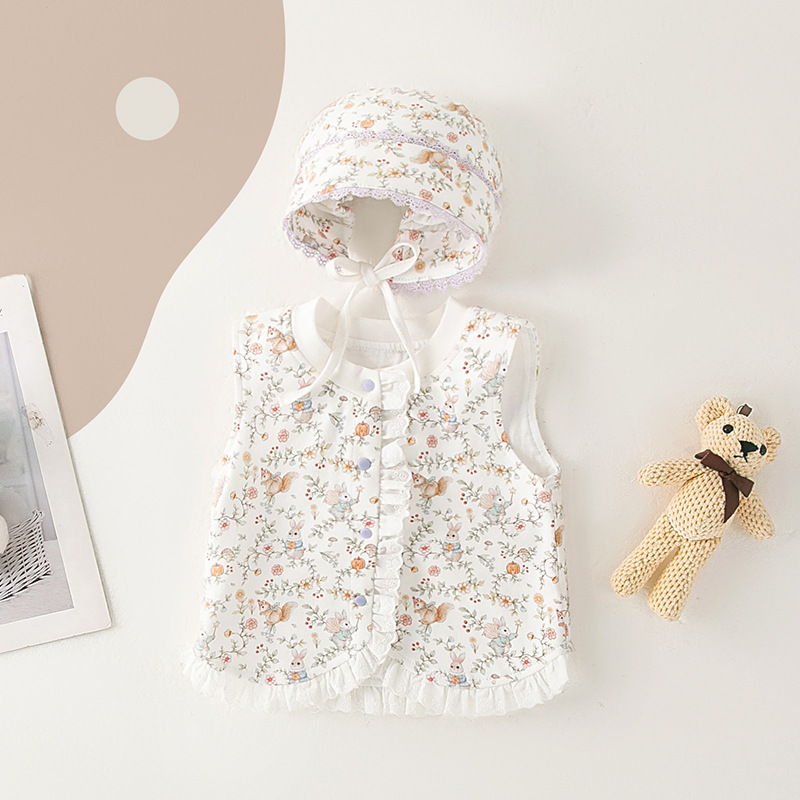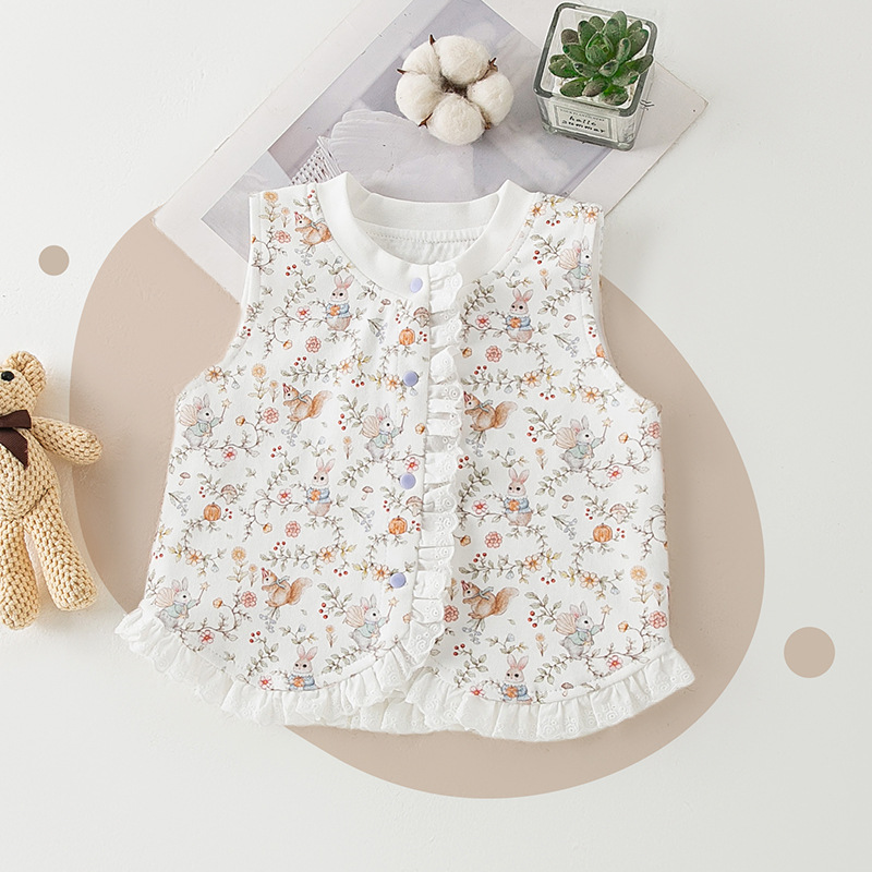 아기 조끼 봄과 가을 순수 코튼 소녀 아기 귀여운 공주 스타일 레이스 조끼 어린이 조끼 겉옷