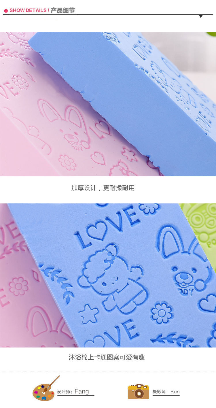 새로운 만화 목욕 도구, 고밀도 및 인쇄된 어린이 목욕 스폰지, PVA 스폰지 목욕 및 먼지 제거 도구스토어 가기