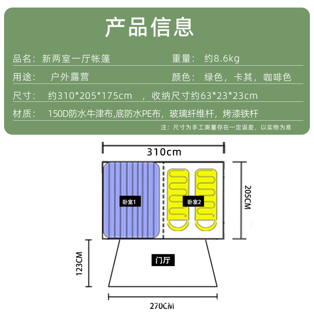 국경 간 2 베드룸 및 1 거실 야외 이중층 텐트 캠핑 방수 및 자외선 차단 캠핑 텐트 공원 멀티 텐트
