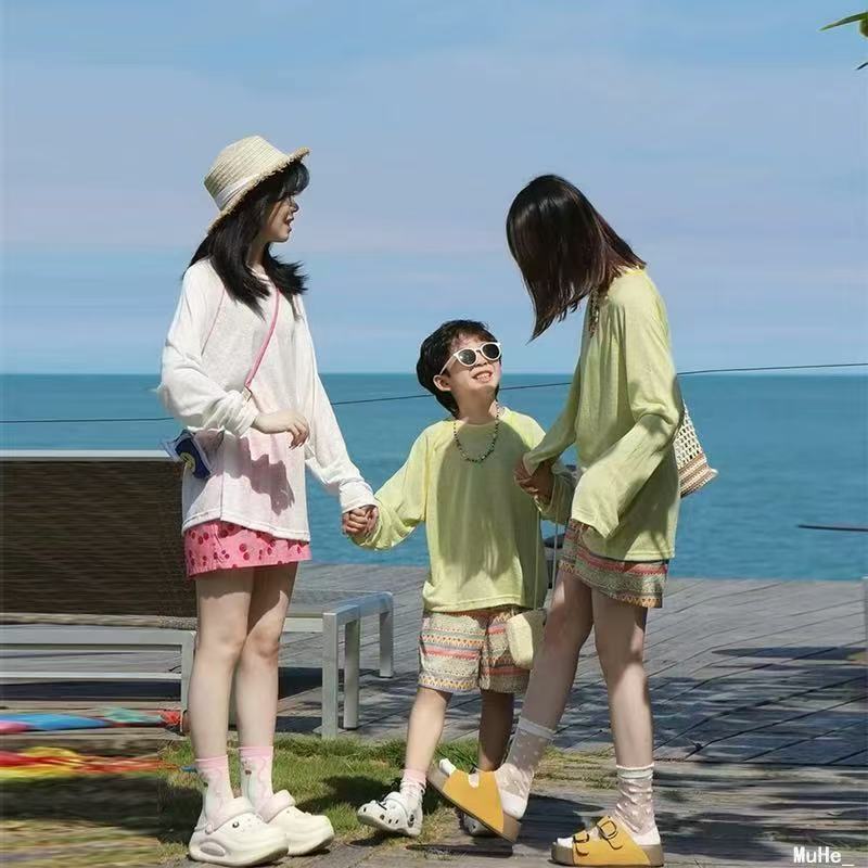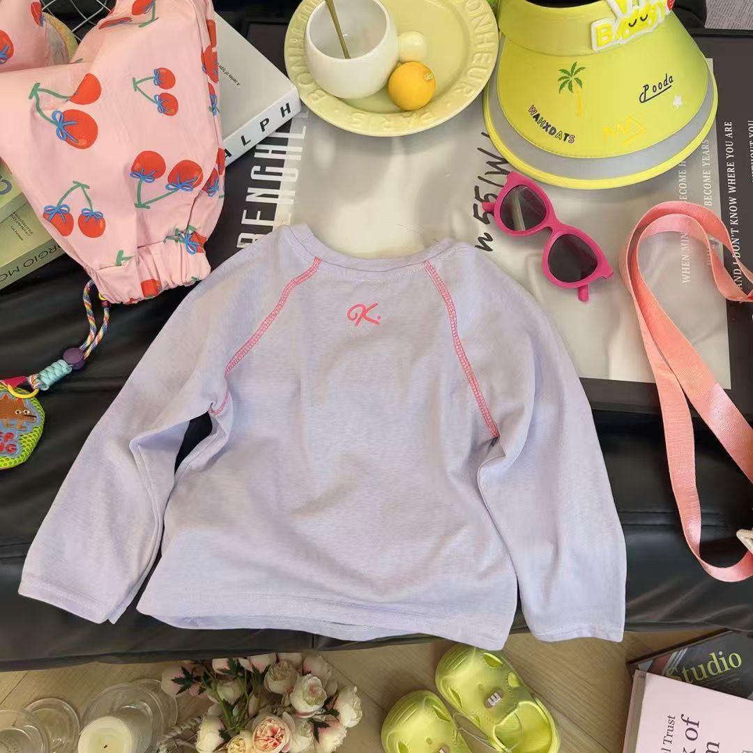 [여행도파민] 여아 패셔너블 스플라이싱 가볍고 부드럽고 시원한 자외선 차단 셔츠 긴팔 티셔츠 탑