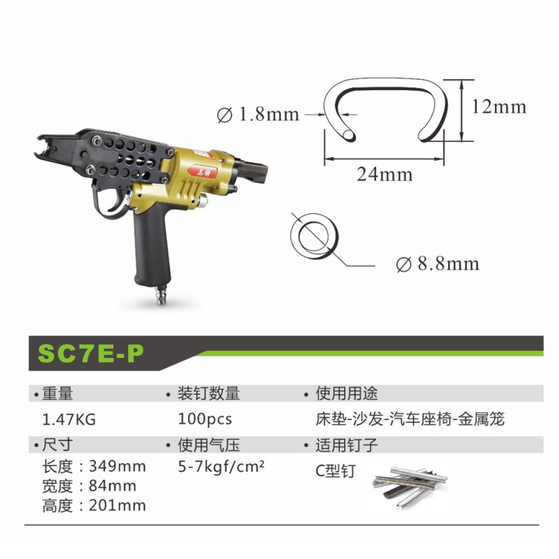 Meite C 형 네일 건 SC7CSC7E 공압 네일 건 760 닭장 및 물고기 케이지 건 수동 가짜 바위 건 에어 네일 건