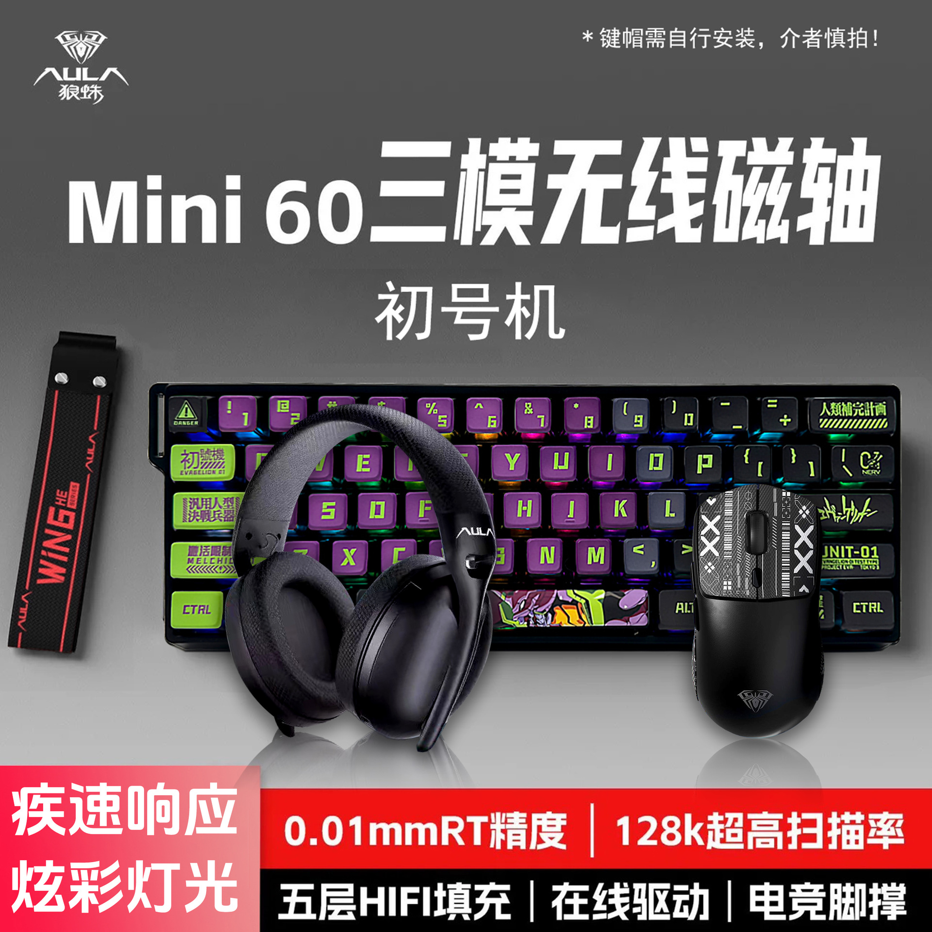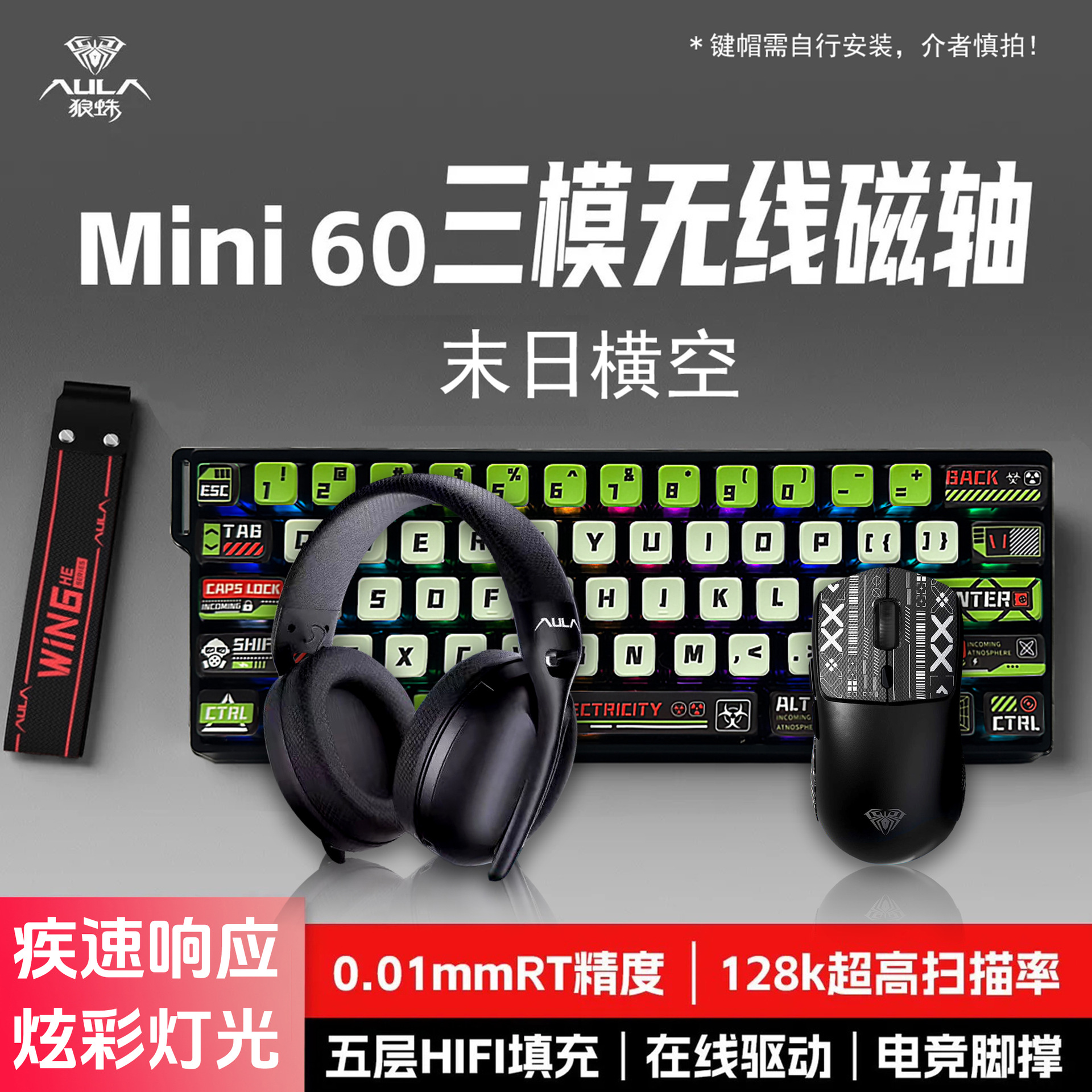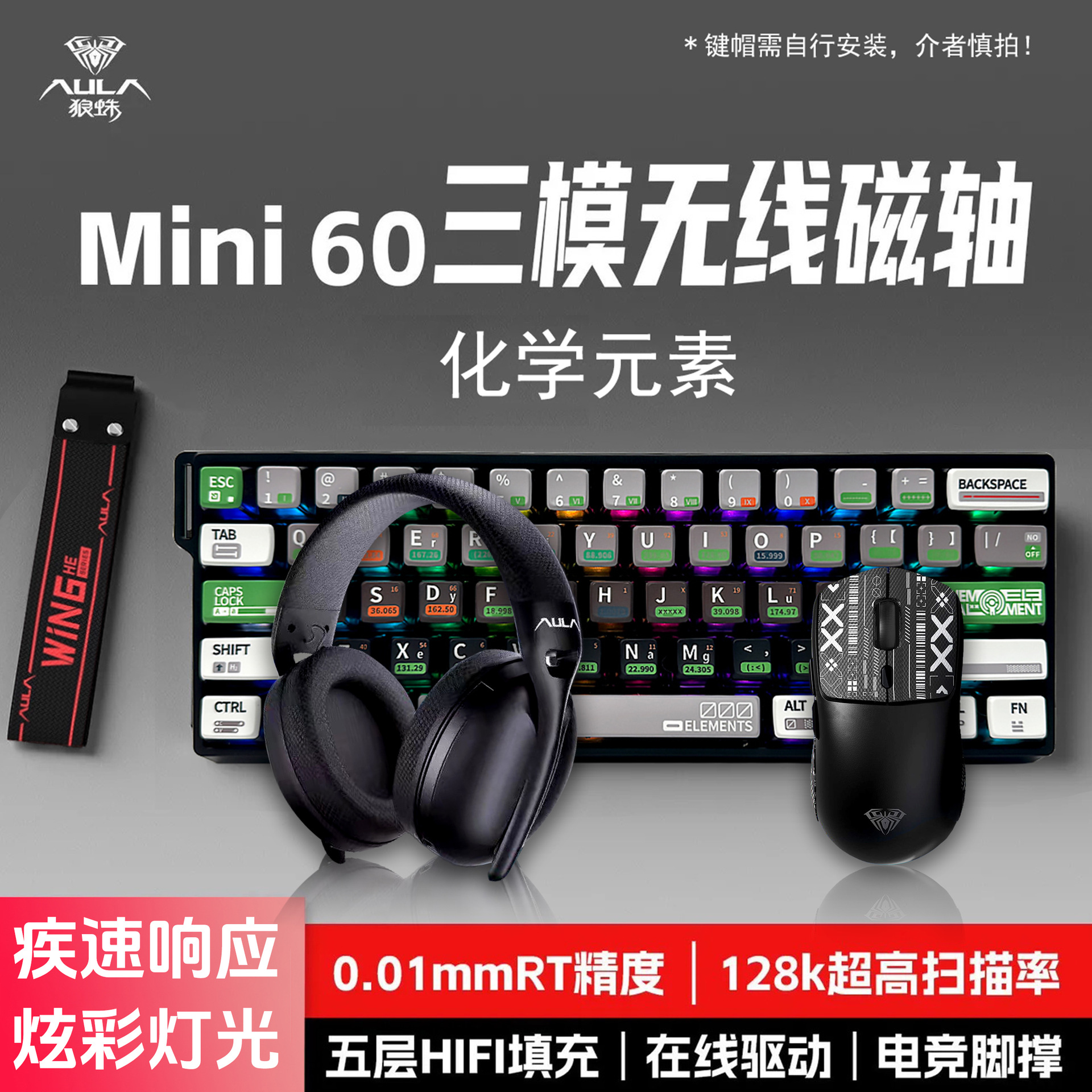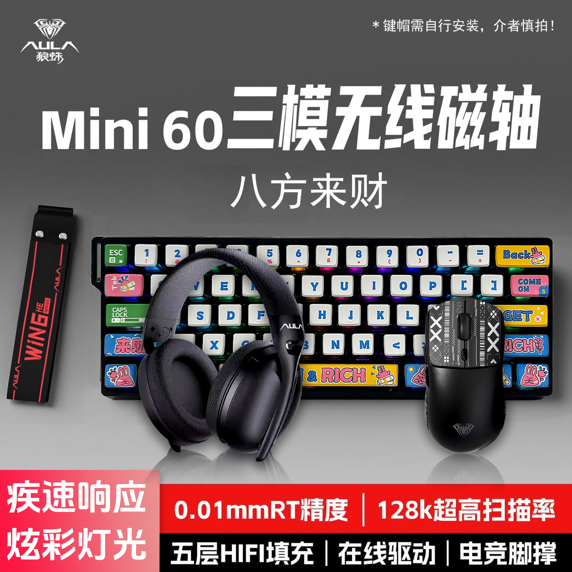 Wolf Spider MINI60HE 마그네틱 축 마우스 및 키보드 헤드셋 세트 3 모드 RT e-스포츠 게임 맞춤형 유선 드라이버 8K 반환스토어 가기