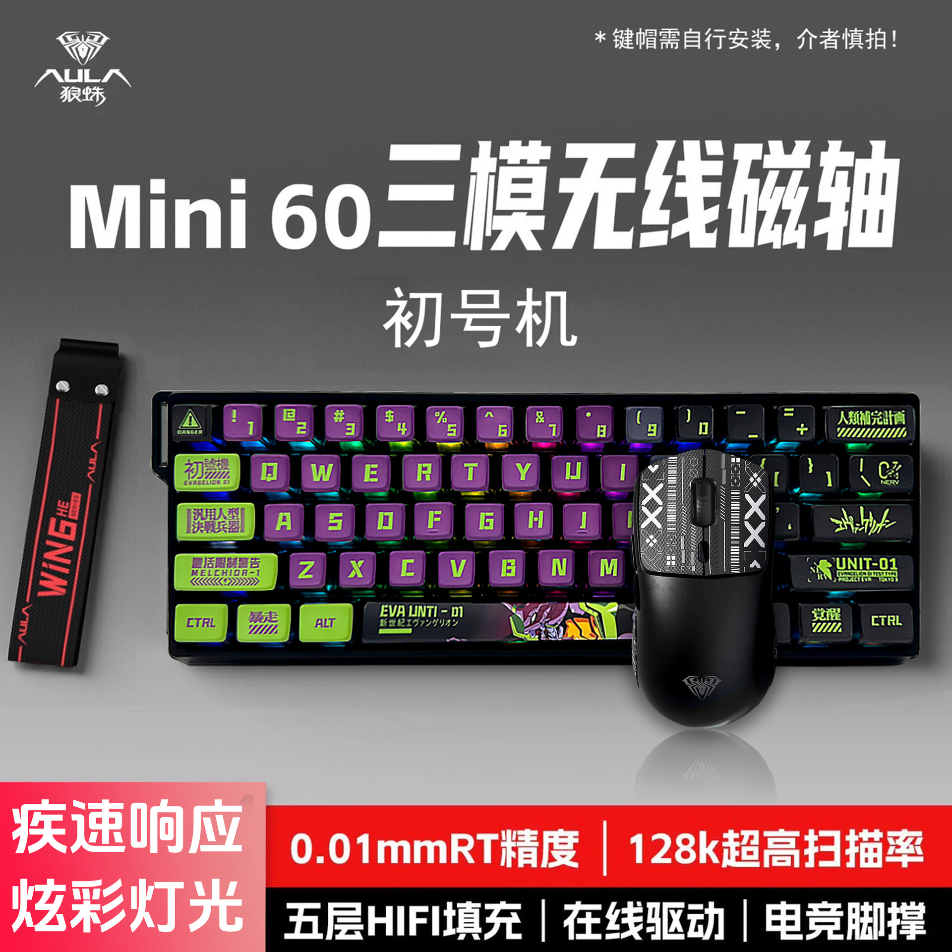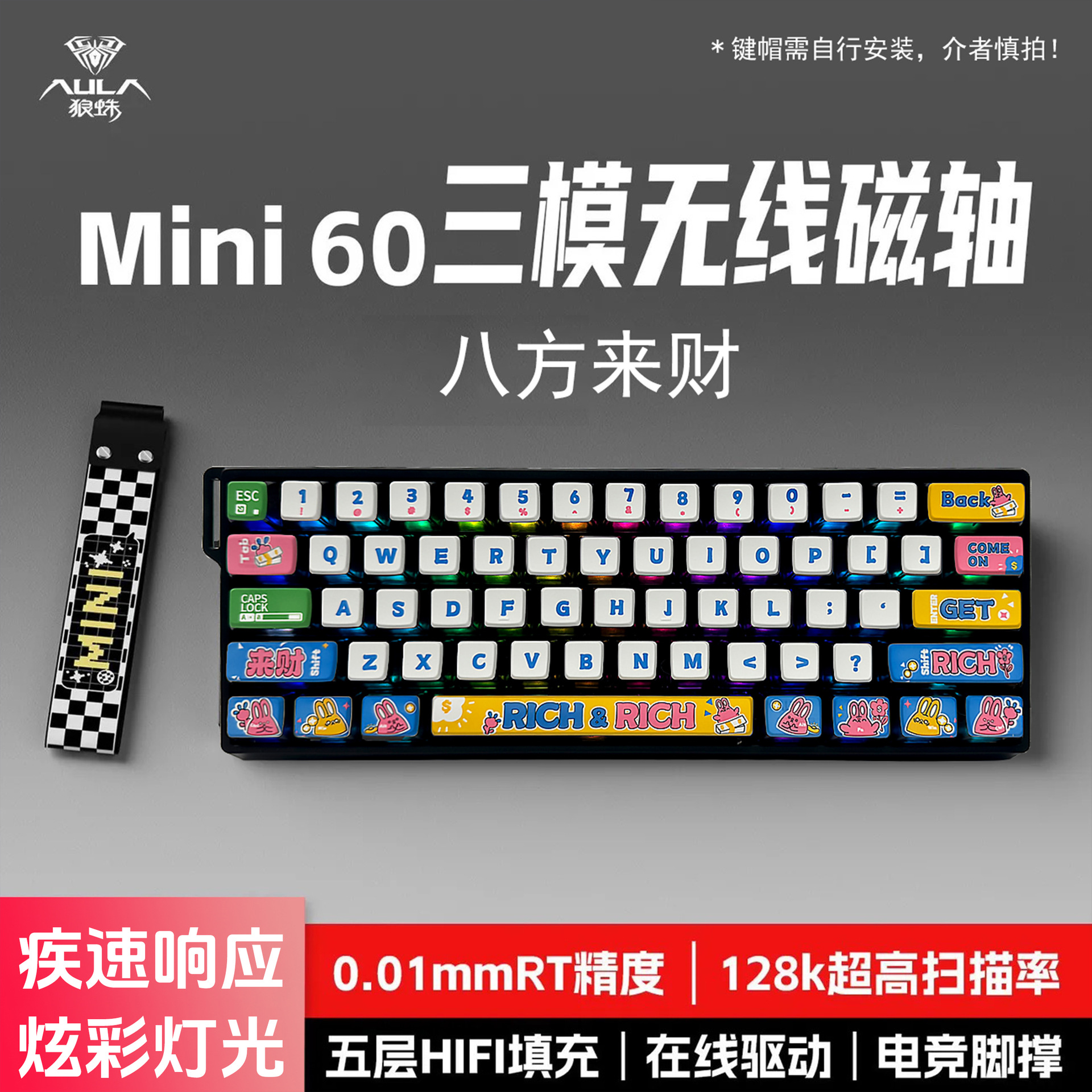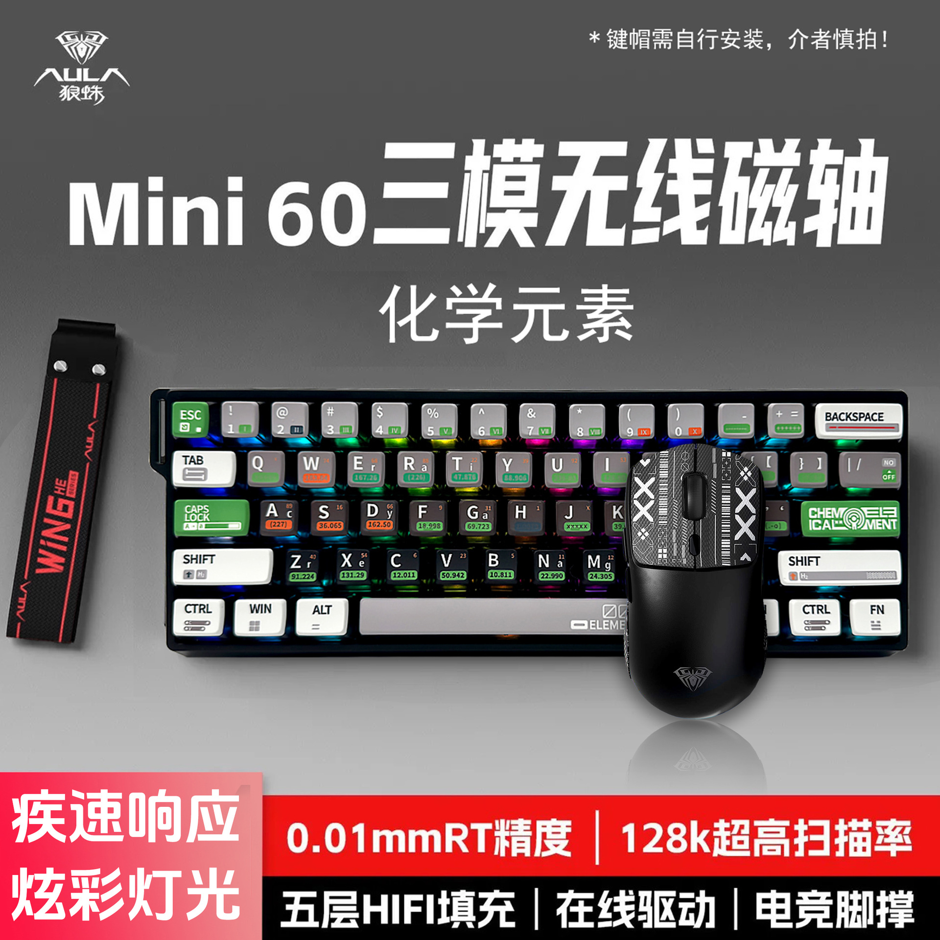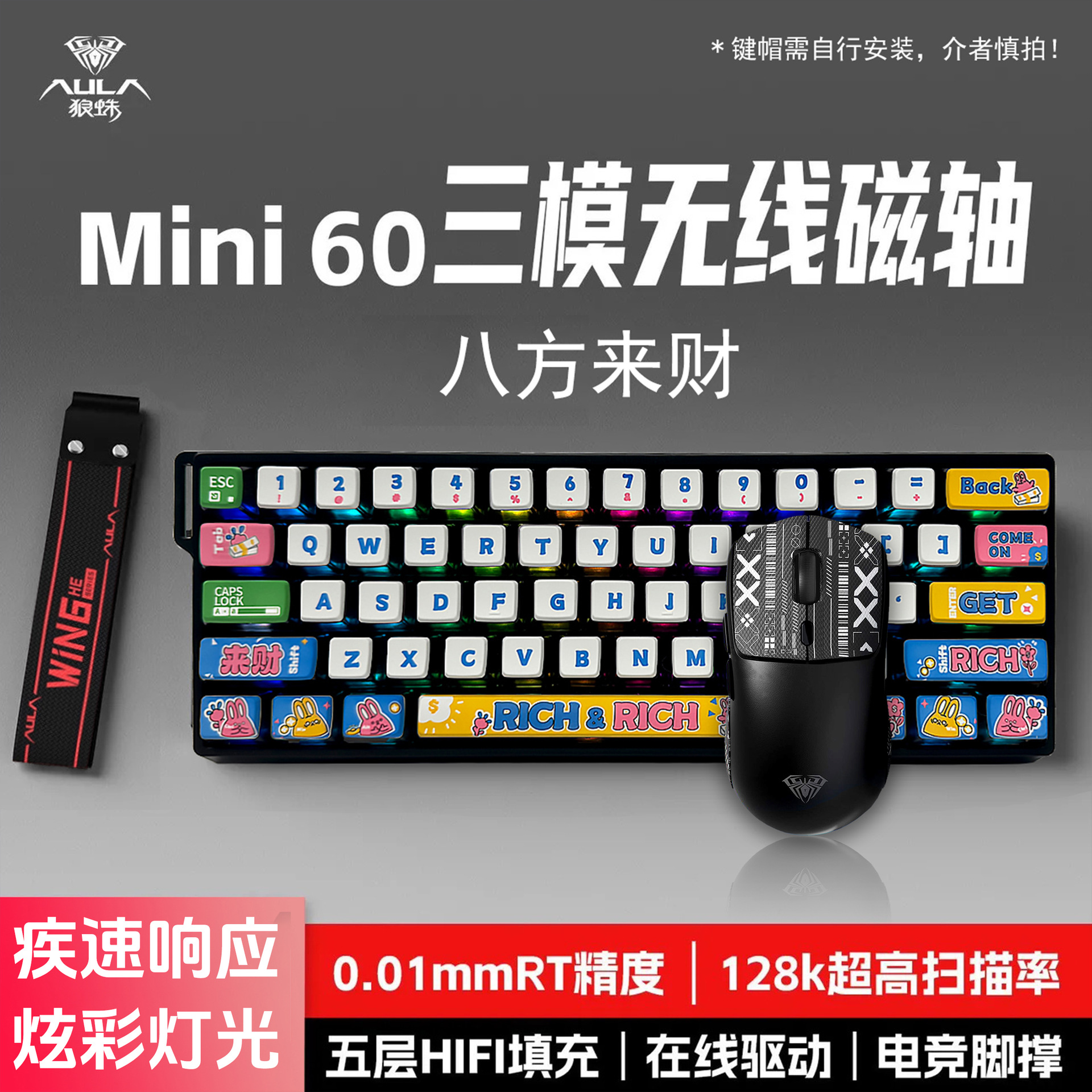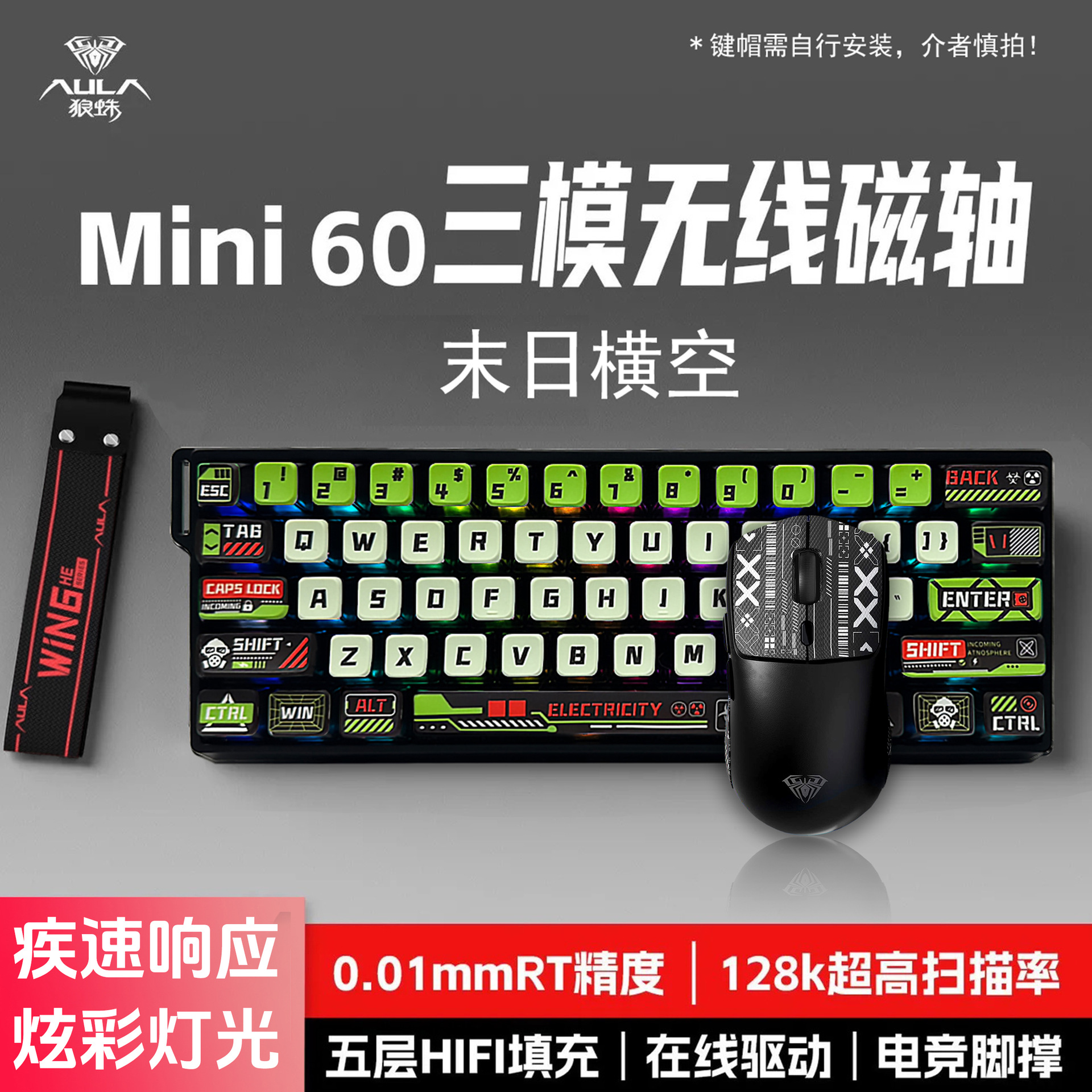 Wolf Spider MINI60HE 마그네틱 축 마우스 및 키보드 헤드셋 세트 3 모드 RT e-스포츠 게임 맞춤형 유선 드라이버 8K 반환스토어 가기