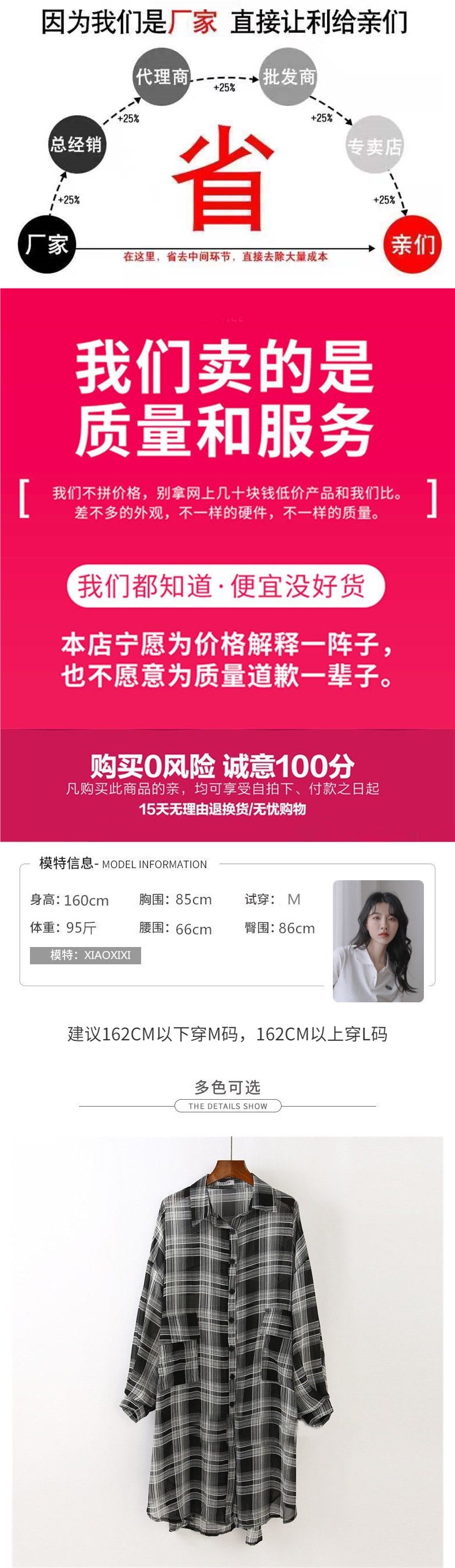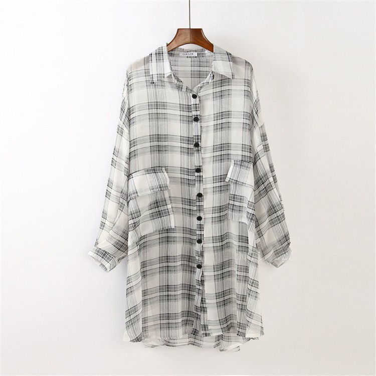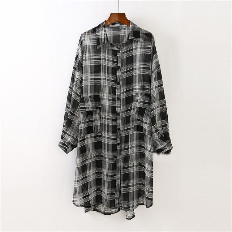 여성용 자외선 차단 의류, 고급 쉬폰 체크 무늬 롱 아우터 가디건, 여름용 긴팔 루즈한 얇은 셔츠 아우터스토어 가기