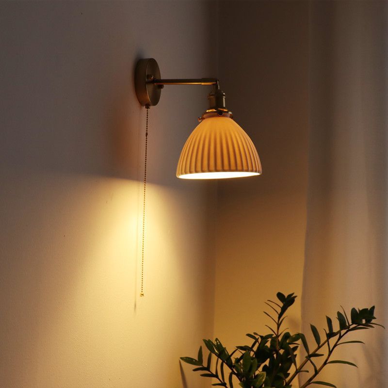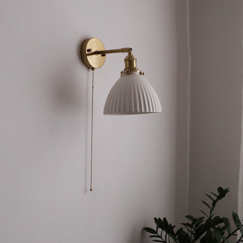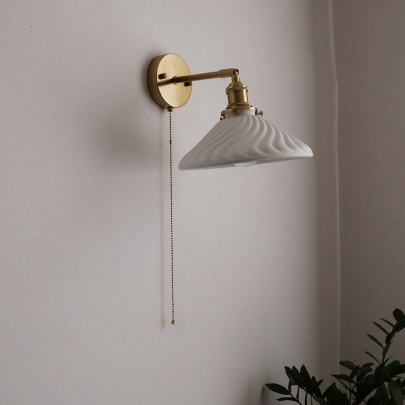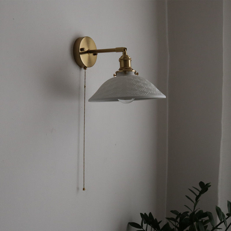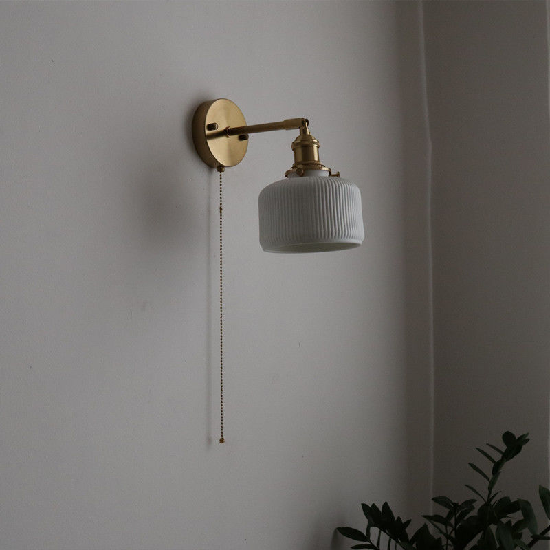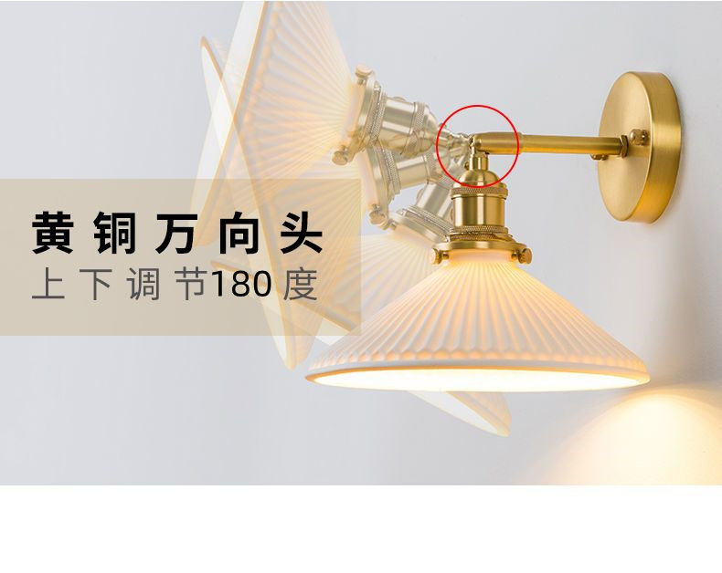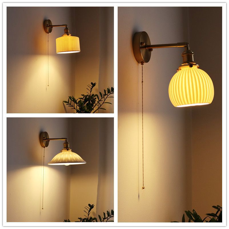 일본 복고풍 황동 세라믹 벽 램프 침실 머리맡 램프 욕실 옷장 배경 벽 당김 스위치 램프스토어 가기