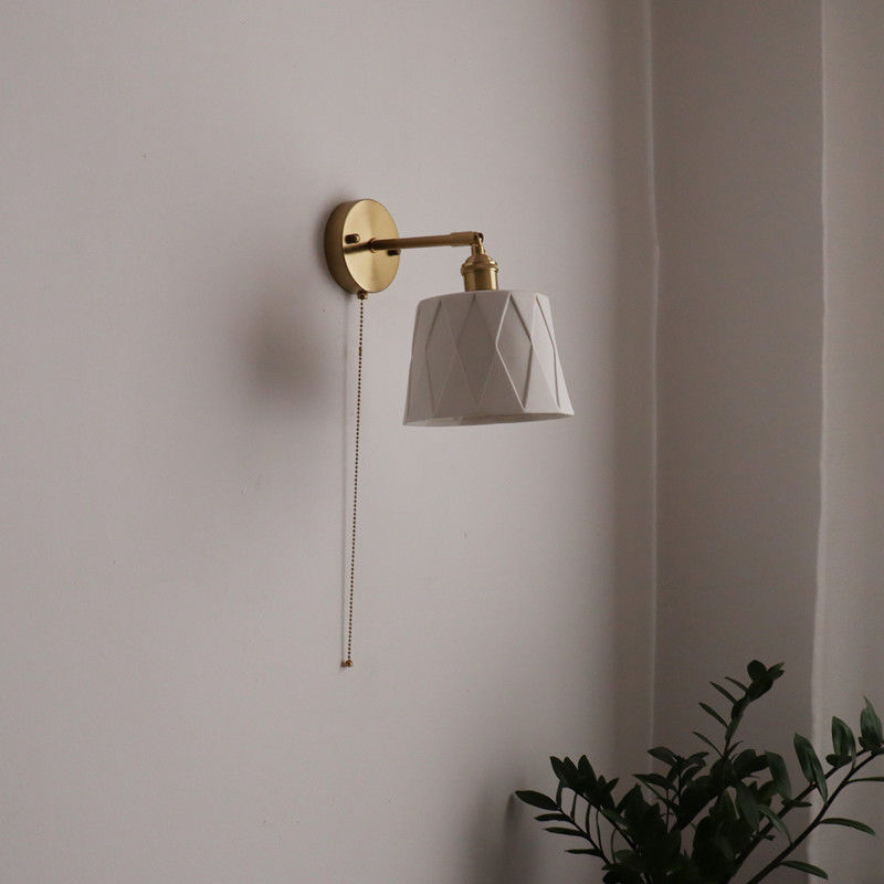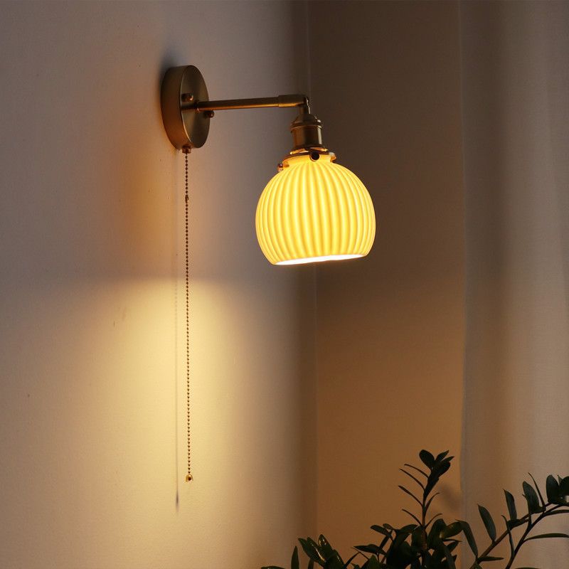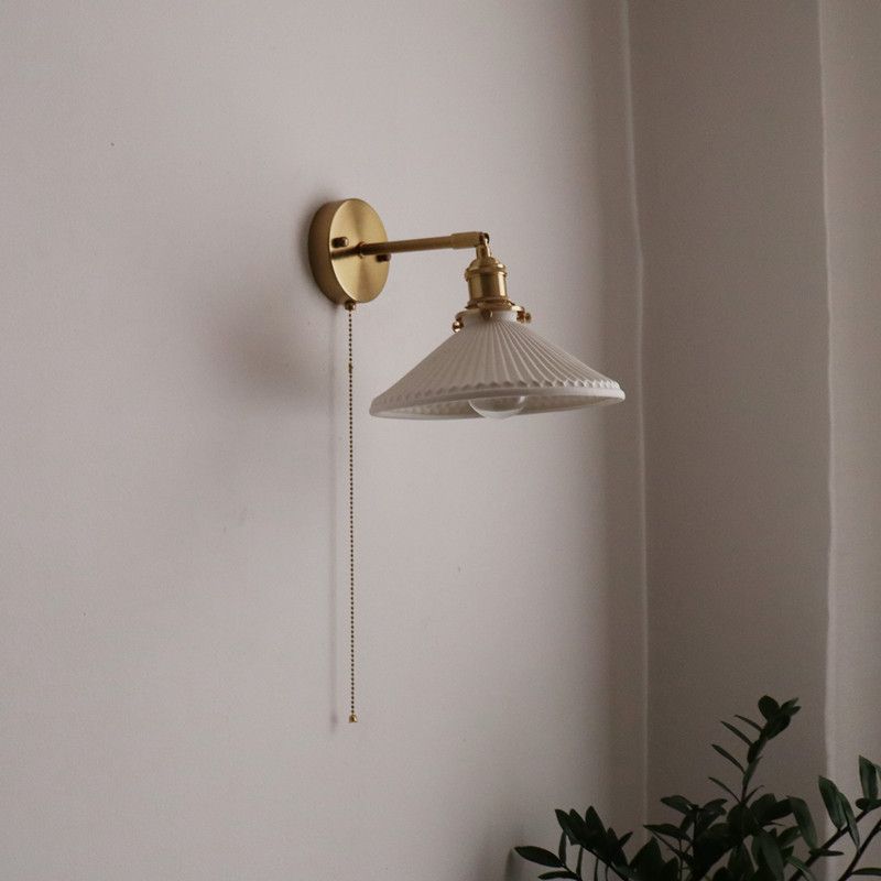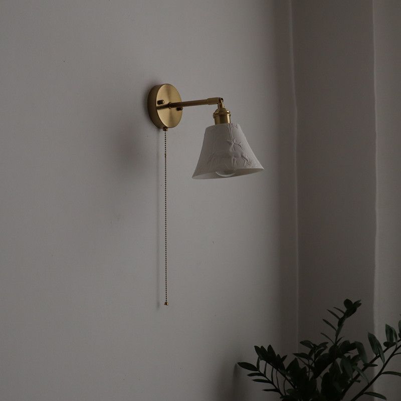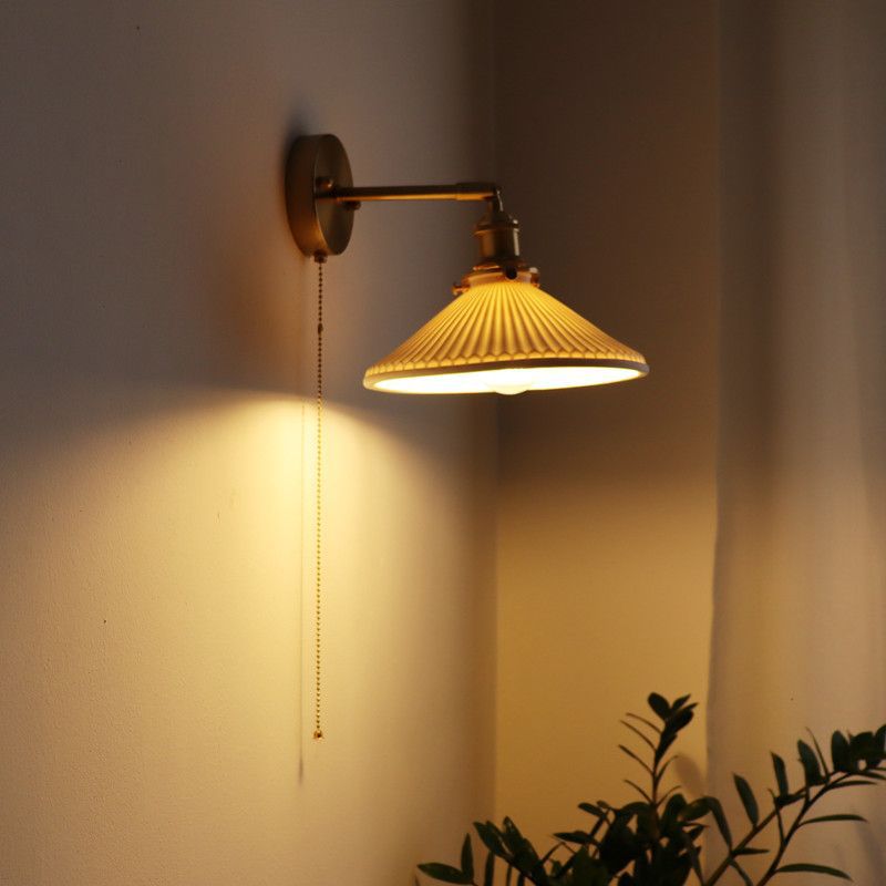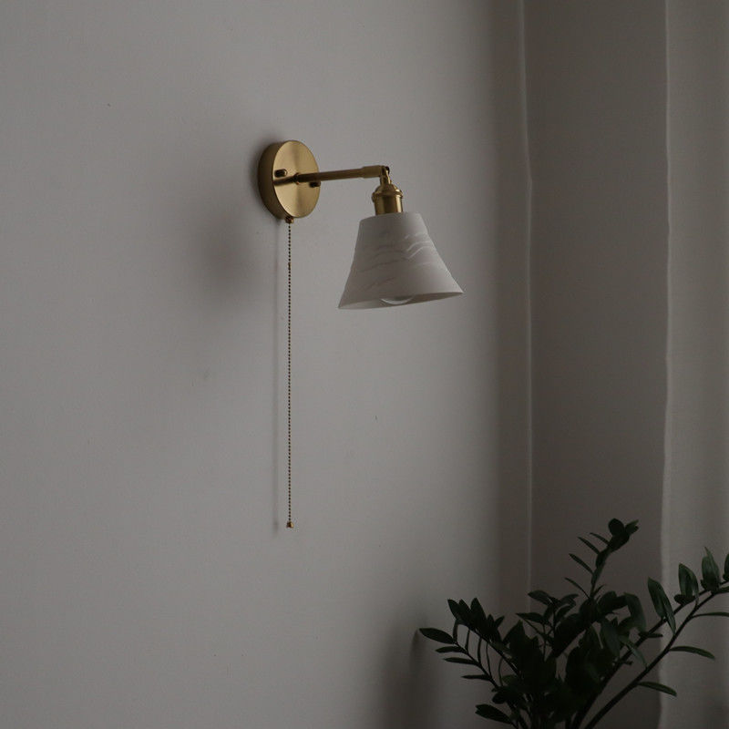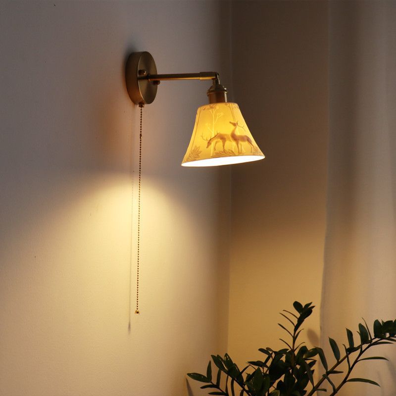일본 복고풍 황동 세라믹 벽 램프 침실 머리맡 램프 욕실 옷장 배경 벽 당김 스위치 램프스토어 가기